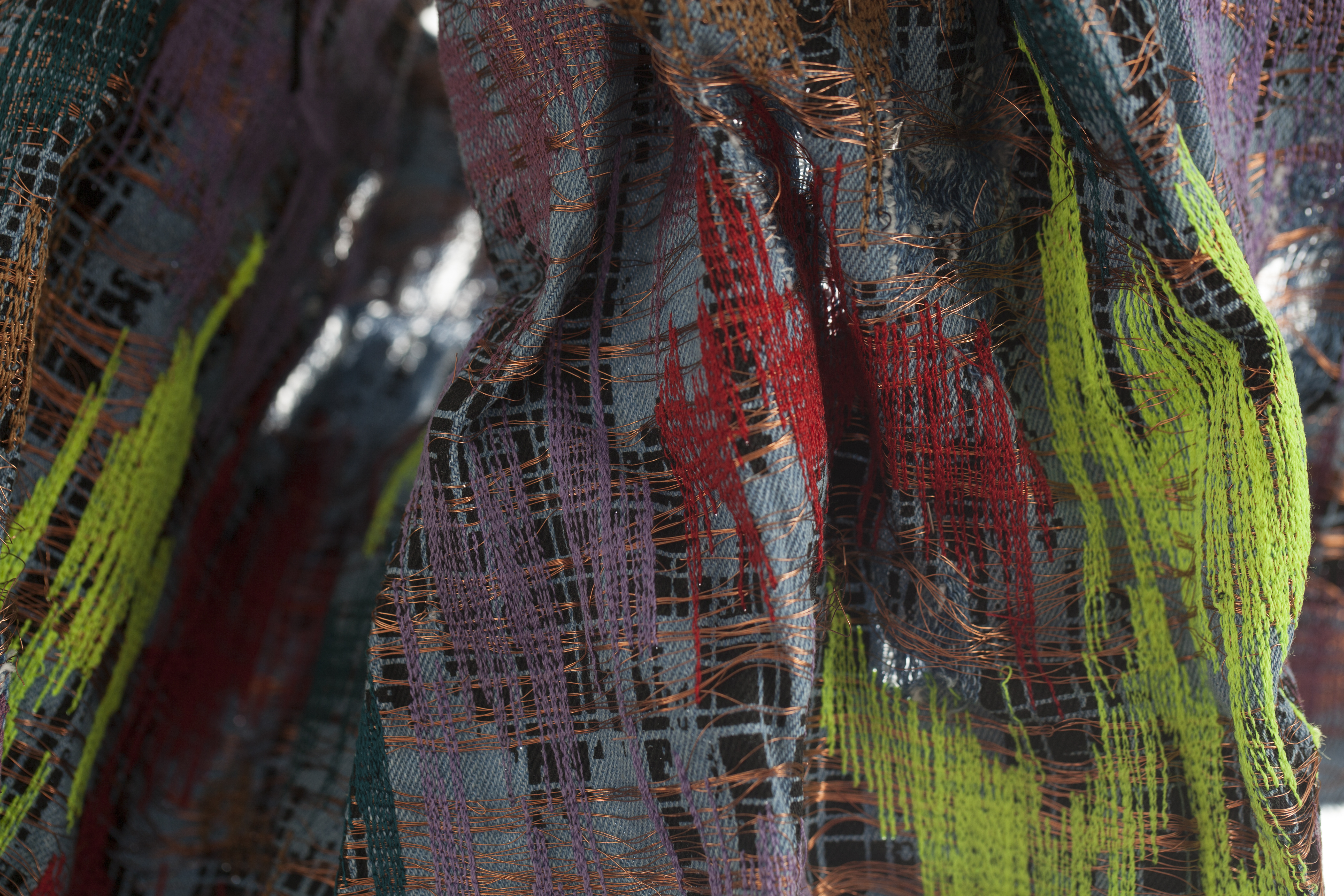 The copper embroidery is embedded with a technology that captures the invisible. Allowing us to transform magnetic elds into sound/vibrations so that we can be aware of the energy that surrounds us.