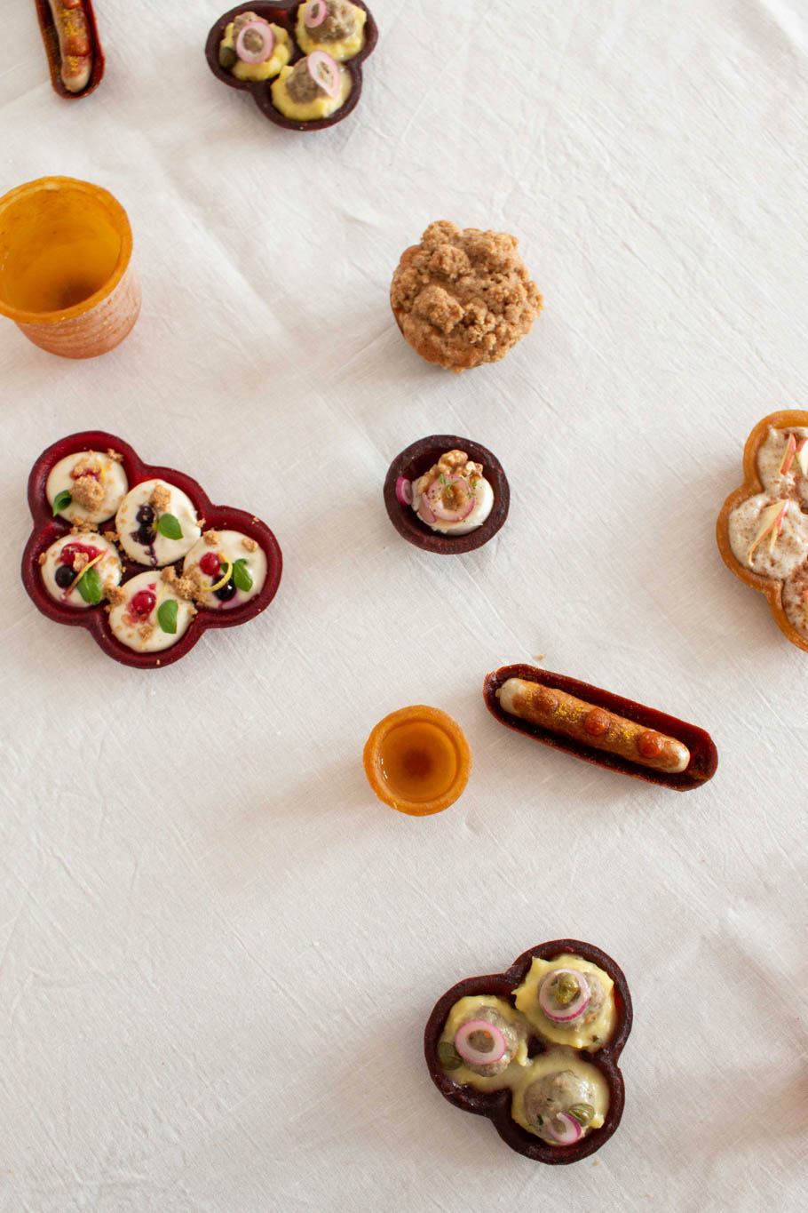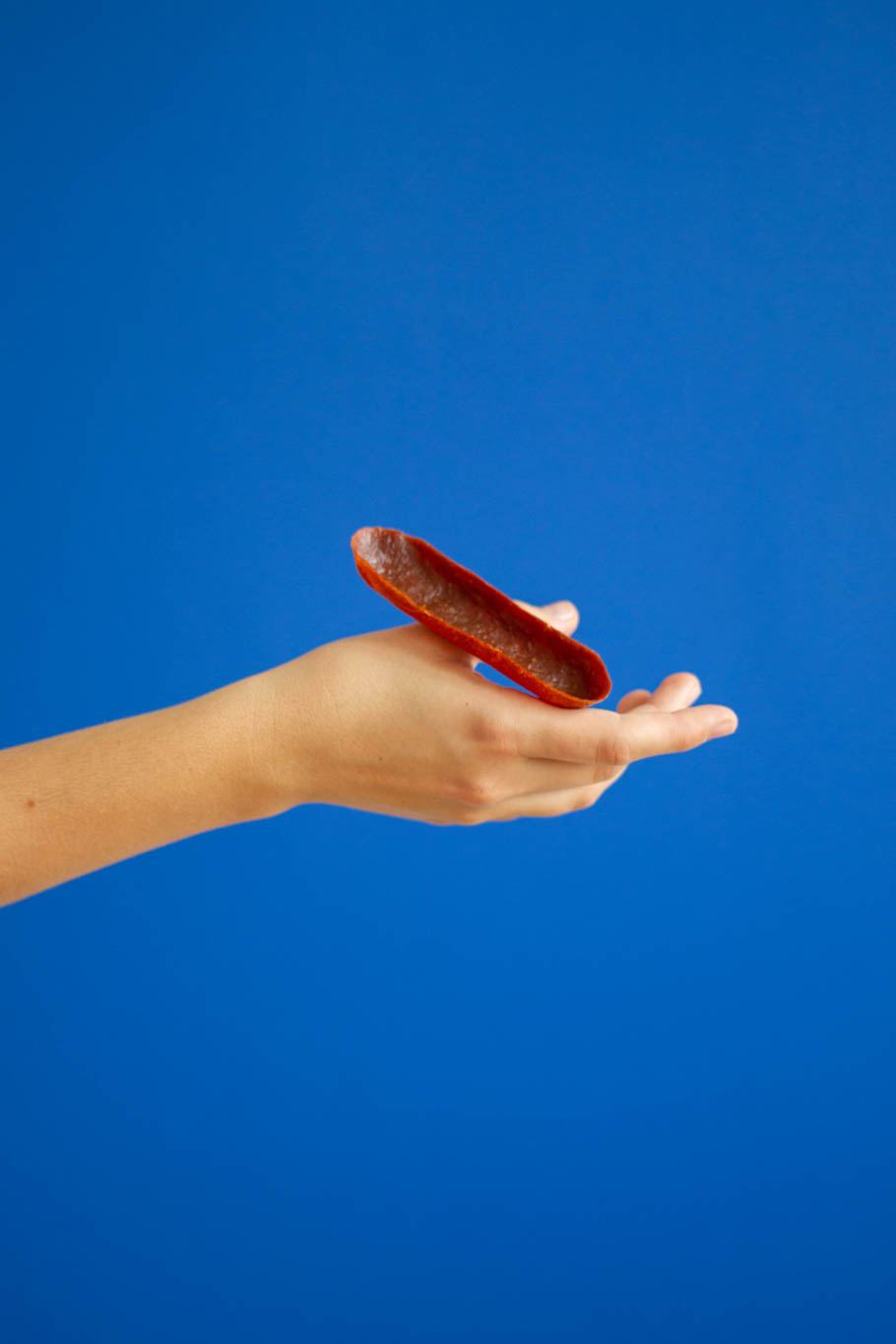 ISSO is a physical carrier of the food as well as a tasteful component of a meal. Imagine the Currywurst being served in a bowl made of dried curry ketchup instead of plates which would be thrown away right after. The paper baking dish for muffins could be replaced by eatable fruit baking dishes, that would be eaten together with the muffin after baking. You can eat with your hands without being irritated by it. And the best part, there is no trash afterwards. You could see it as kind of a cutlery which brings together different cultures.