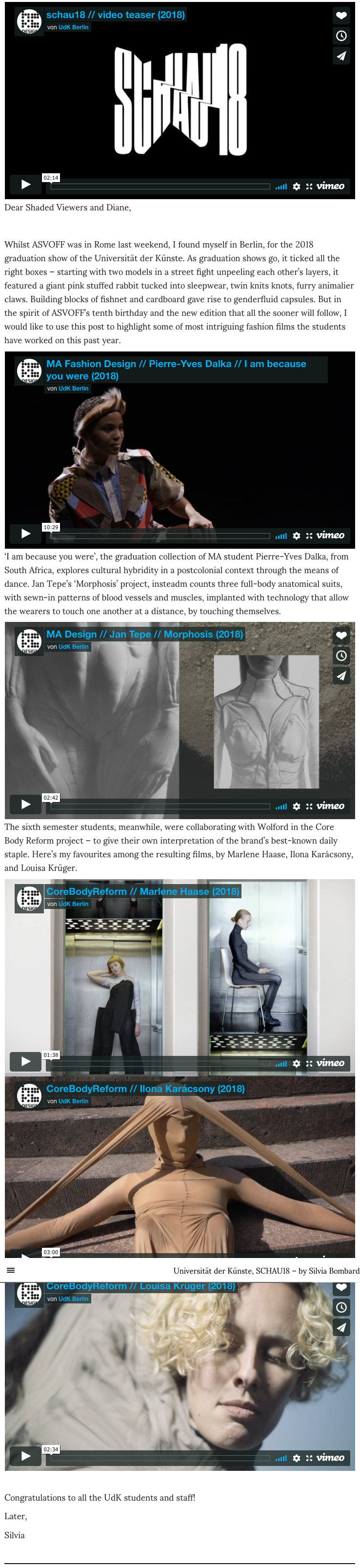 Silvia Bombardini war zu Gast bei der SCHAU18 und hat einen Artikel auf der Plattform A shaded view on fashion veröffentlicht.