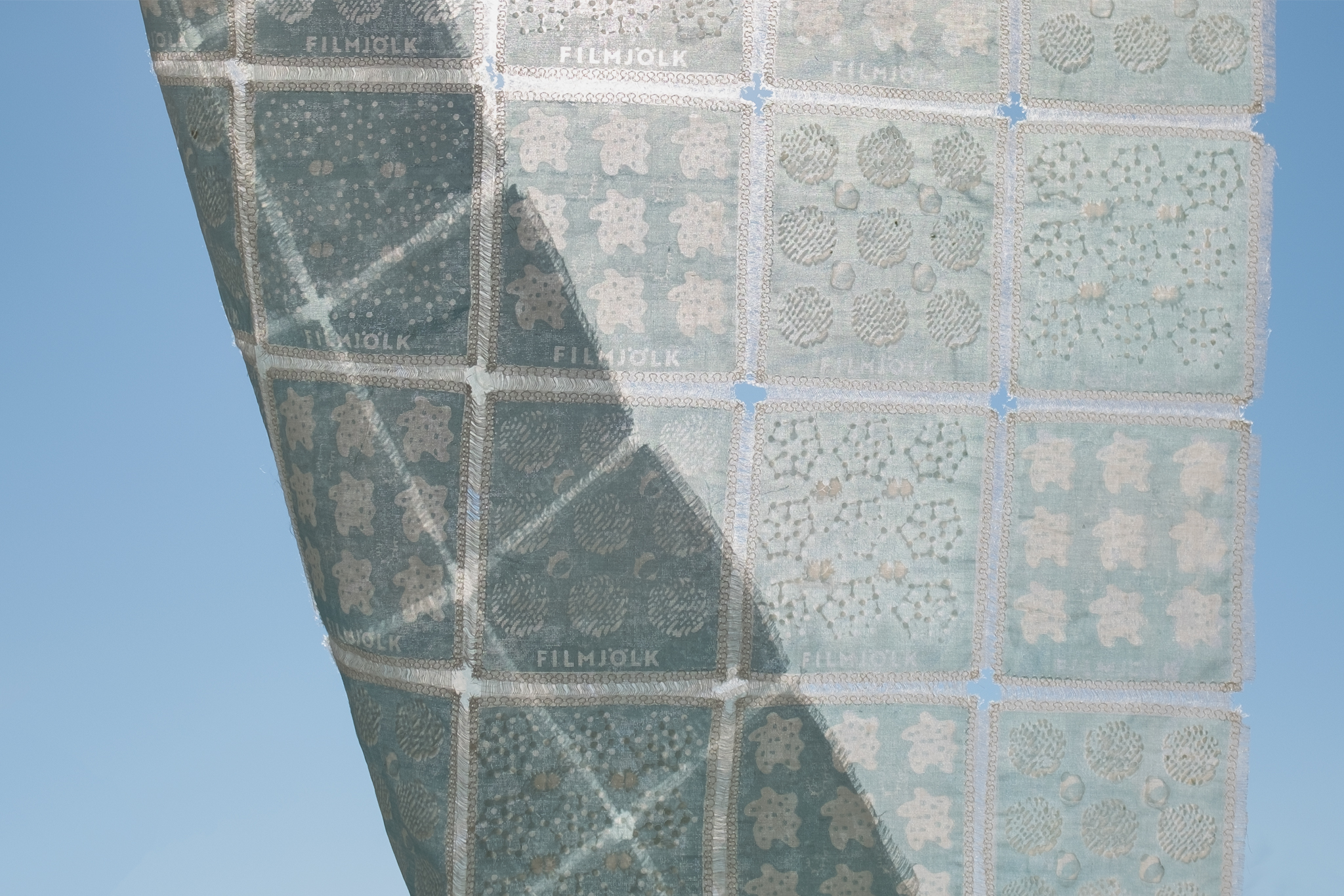 Inspired by it I carry the sour milk, which is as a starter culture for a new production cycle reusable, in certain forms on textiles. The shapes are presented as graphics or ornaments that visualize the bacteria involved in the fermenting process. The squares are measured as a unit for the culture storage, which can easily be cut off and used again as a starter platform for new sour milk.