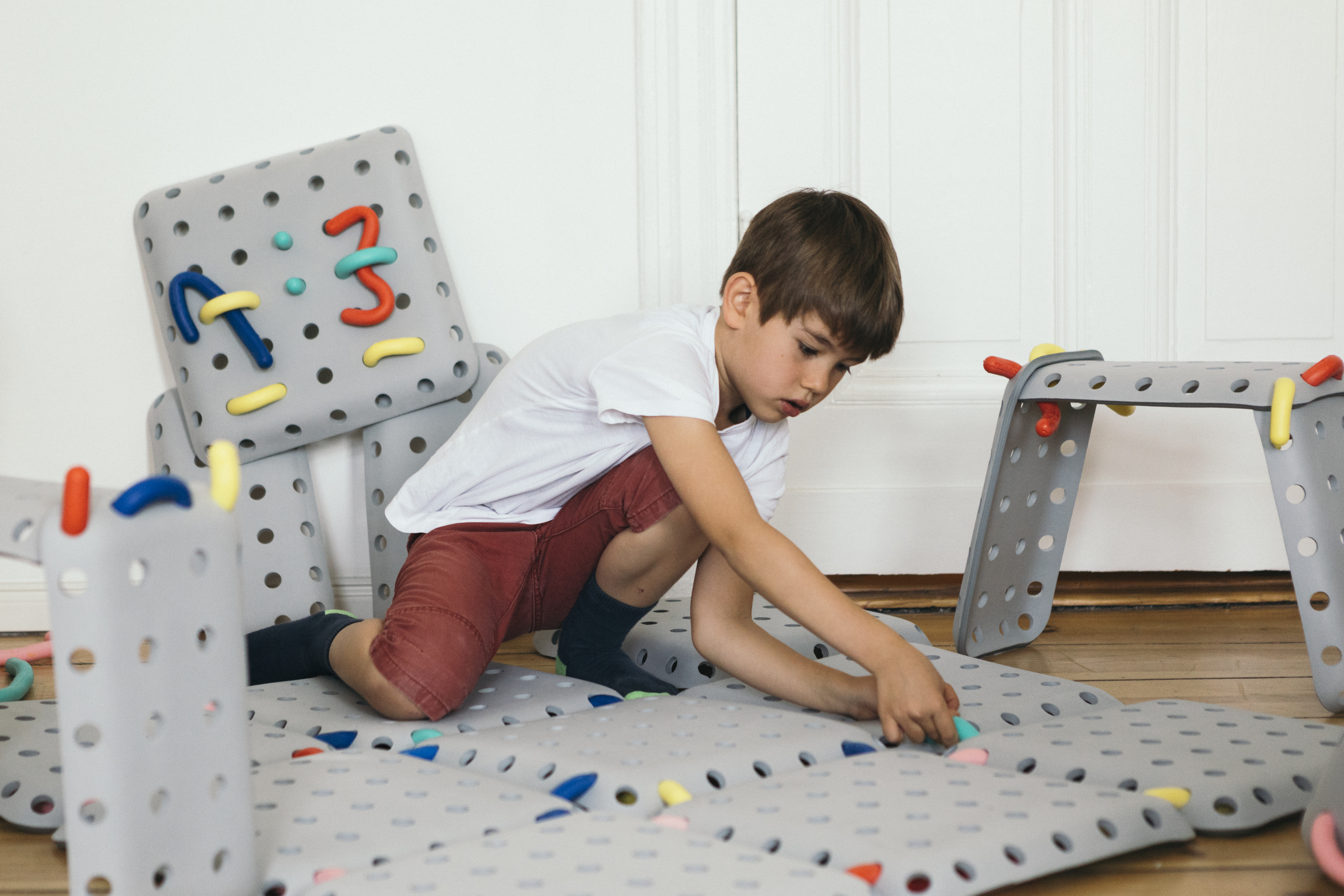 WURM WERKSTATT is a construction toy for children that offers many possibilities. Proportions and geometries can be discovered and used in a playful way. It is crucial that children put their creativity into practice and express themselves whilst playing. The assembly process requires not only fine motor skills, but also for them to use their whole body to create what is in their imagination.