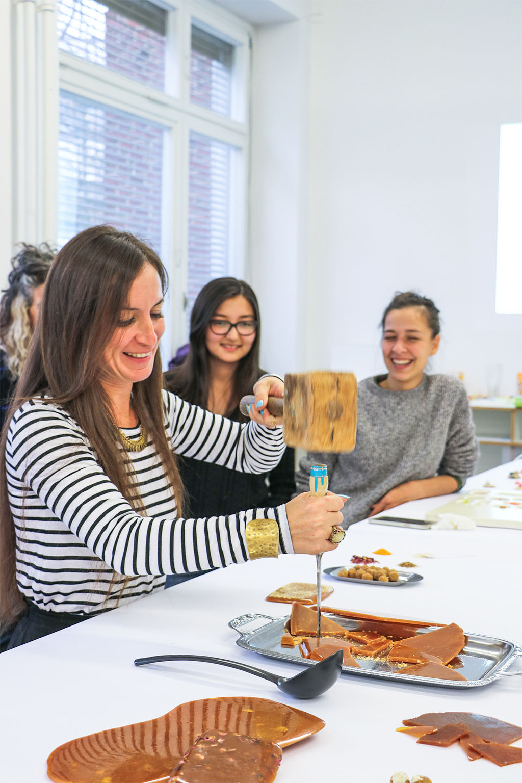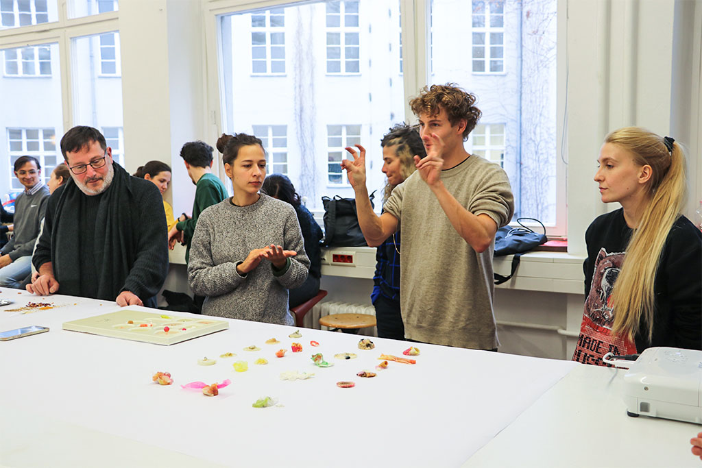 Speculative Food Design nutzt die Werkzeuge des Designs, um sich alternative Lebensmittelpraktiken, zukünftige Ernährungssysteme und experimentelle Ernährungsweisen vorzustellen und zu prototypisieren. Im Rahmen des Workshops entstanden unterschiedliche Studien und Spekulationen zu nötigen oder möglichen Snack-Kulturen, die die Rolle und Wirkungsweise der Zwischenmahlzeiten experimentell erweitern.