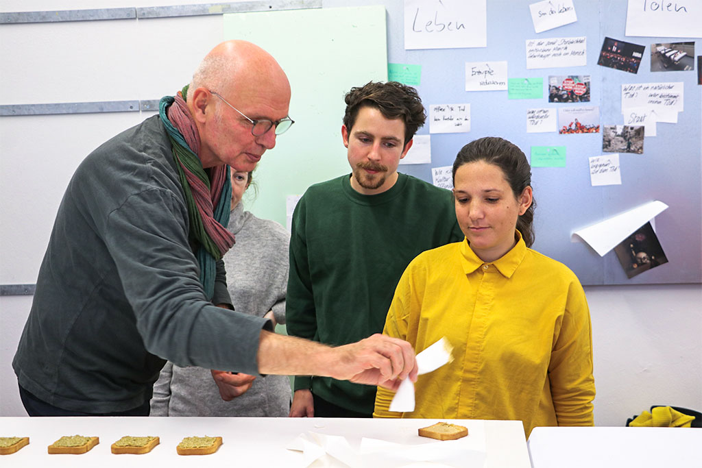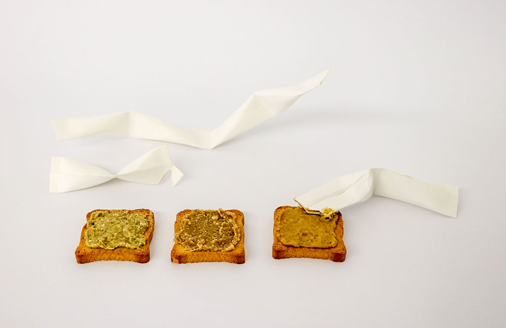 Welche Rezeptur kann in einzelne Akte zerlegt, verzweigt und neu verknüpft werden? Um welche Qualitäten und Fähigkeiten könnten die Snacks erweitert werden? Wie werden wir diszipliniert durch Portionierung und Rationen? Und wie müssen die Objekte des Verzehrs, dieser möglichen Szenarien gestaltet werden?