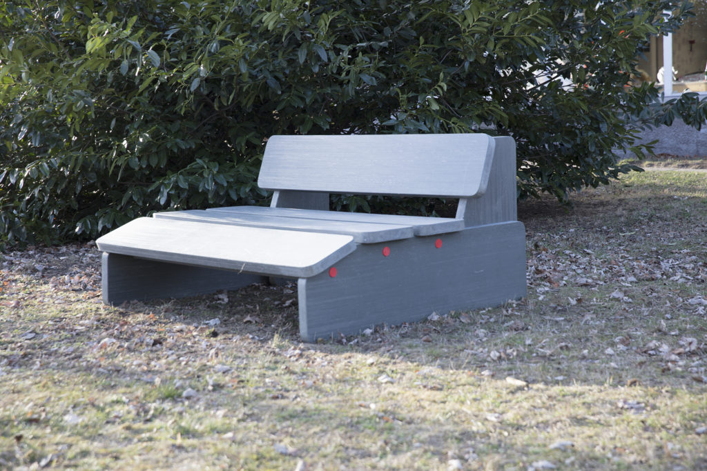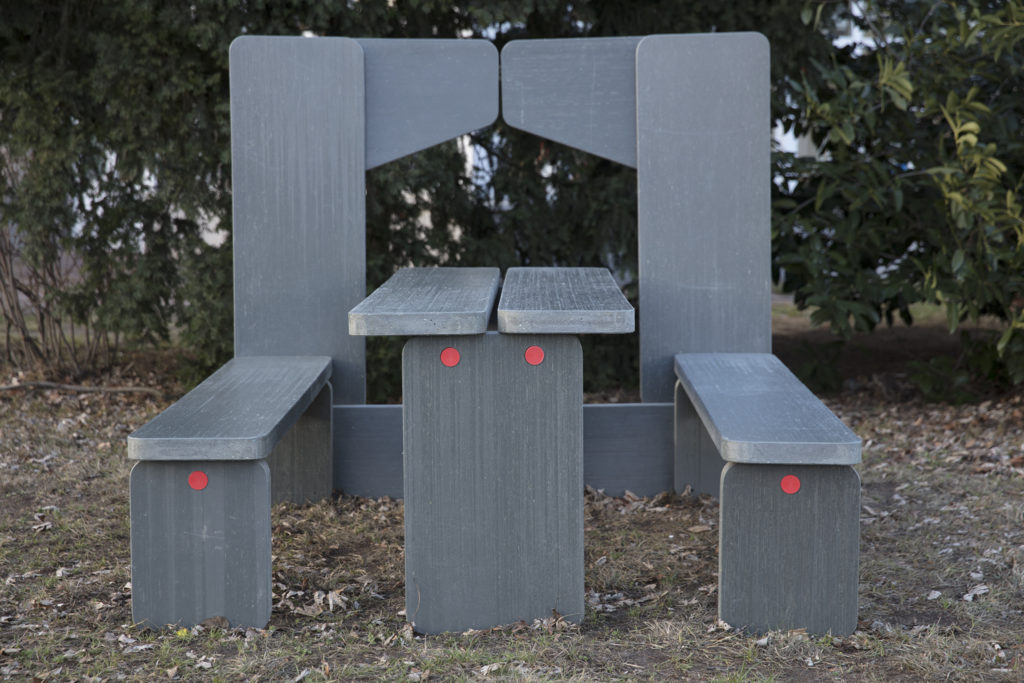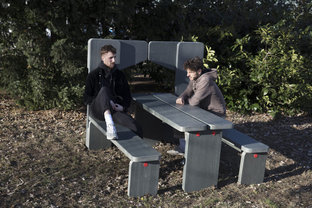 The furniture is constructed with recycled plastic sheet material produced by Hahn Plastics GmbH.