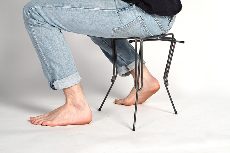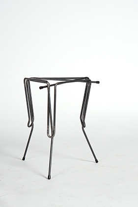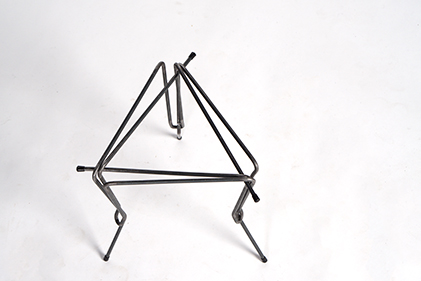 A metal stool stems from the idea of geometric locking and thinking games. The stool is made up of three identical, repetitive parts that combine to create a structural strength. The stool is an initial stage of a formal search process that resulted from a thought about game and strength.