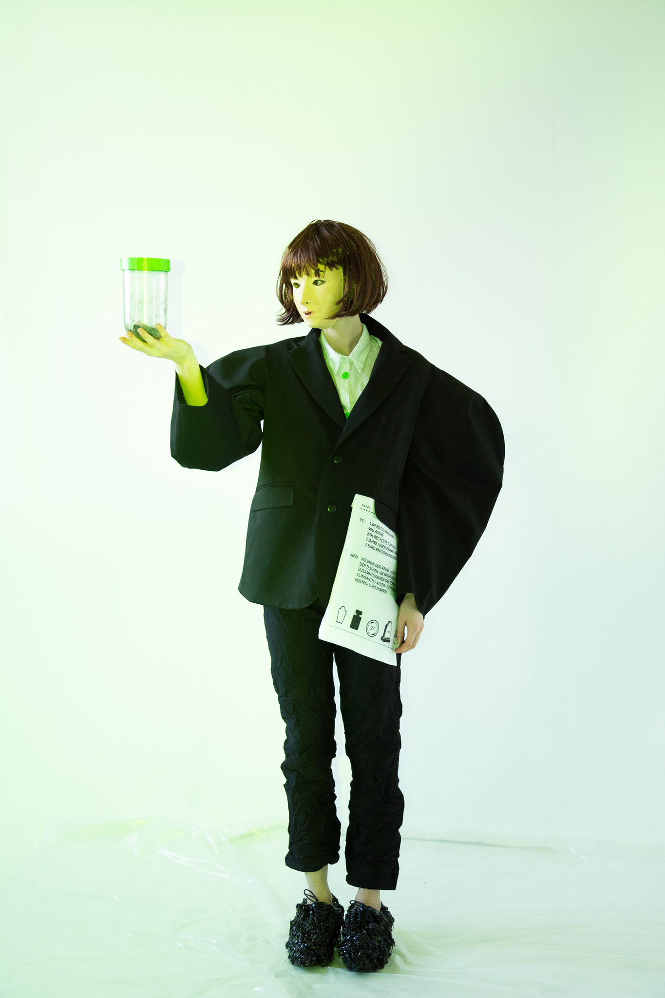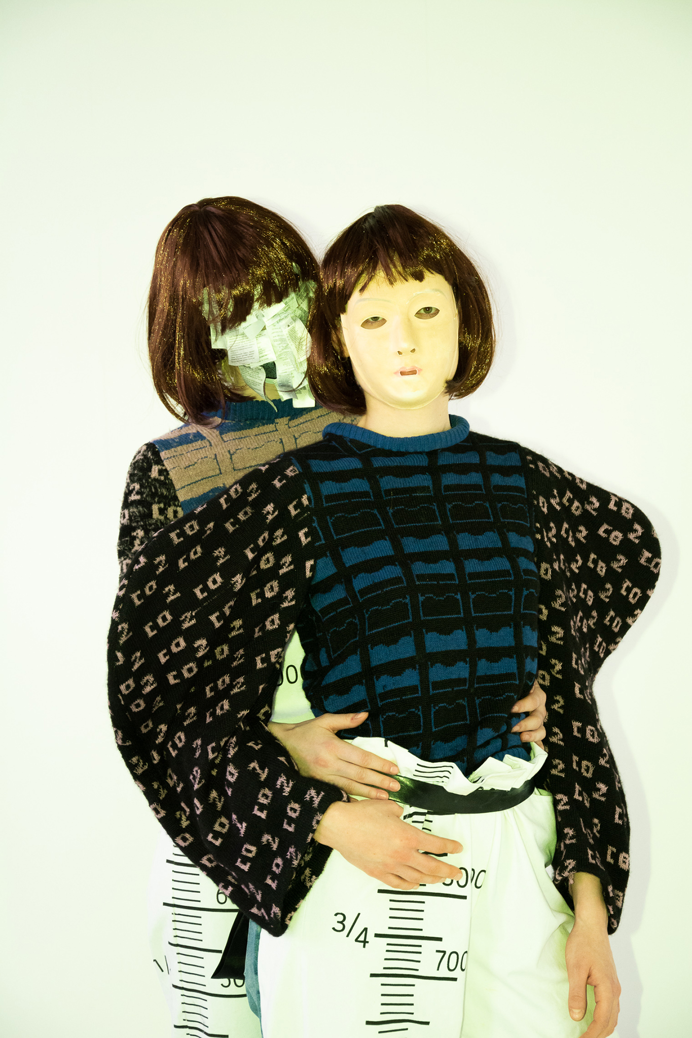 Silhouetten die Kleidung einer Durchschnittsfrau bestimmt. Als Vorlage diente uns dabei: Alltag, Arbeit, und Ausgehen. Dabei steht freie Zeit für Geburt, Alltag für leben und Arbeit für den Tod. Jede dieser Kategorien wurde nochmals in Bezug auf den Menschen sowie seine Textilien untersucht, sodass am Ende eine Kollektion von sechs Silhouetten entstanden ist.