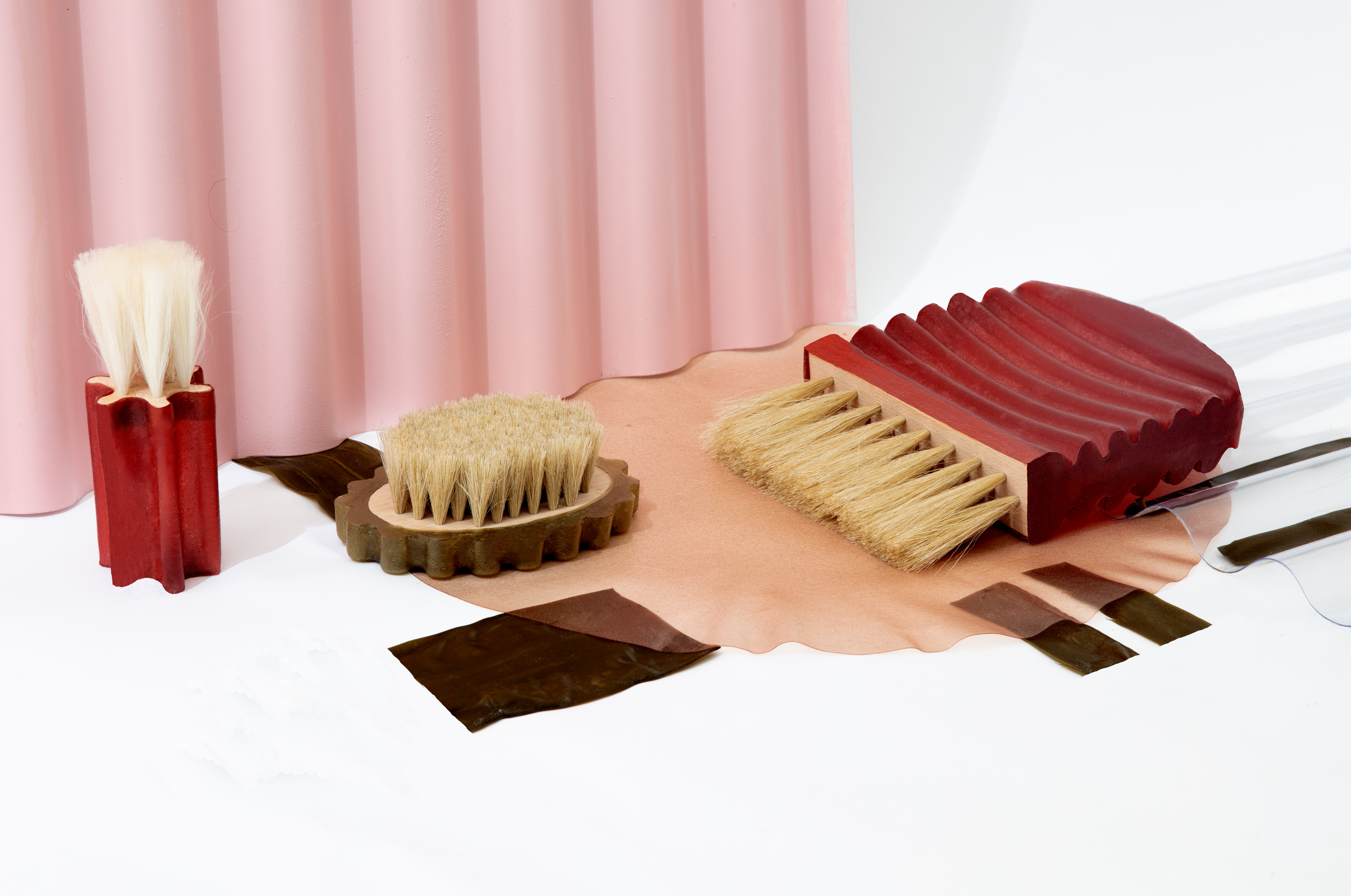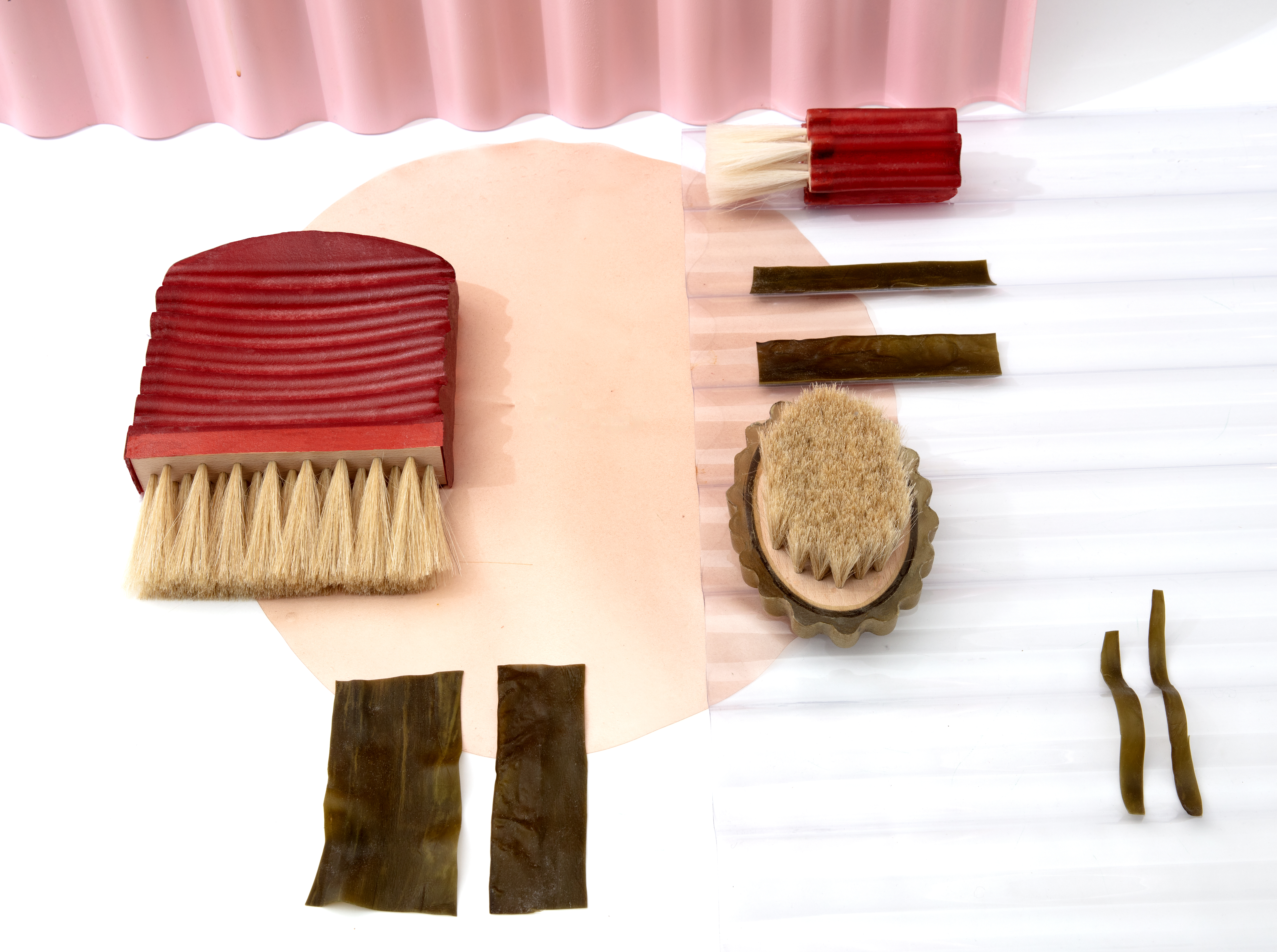 AGA AGA AGA ist eine Materialrecherche nach einer Stofflichkeit die herkömmliche Kunststoffe ersetzen kann. Der Wunsch nicht nur ein neues Material zu entwickeln, sondern auch der Wille jene Materialität in industrielle Prozesse zu implementieren ist die Basis dieser Arbeit. AGA AGA AGA ist ein Faserverbundstoff, der zum wesentlichen aus einem Algenauszug besteht. Er besitzt die Eigenschaft, sich unterm Einfluss von Hitze und Feuchtigkeit gänzlich in seine Bestandteile zu zersetzen, lässt sich jedoch wie herkömmliche Kunststoffe verarbeiten. Durch seinen durchweg natürliche Zusammensetzung und energiesparsame Herstellungsweise erfüllt er alle Attribute der ökologischen Nachhaltigkeit. Diese und andere Merkmale machen es möglich Produktionswege und vor allem auch Recyclingmöglichkeiten neu zu denken. Mein Entwurf der Forschungsarbeit, illustriert lediglich eine mögliche Art der Materialanwendung. AGA AGA AGA ist als Beispiel und Gedankenanstoß zu verstehen, und zeigt sowohl das Potenzial, die vielfältigen Nutzungsmöglichkeiten aber auch Sinnlichkeit und Leichtigkeit der neuen Materialität auf.
