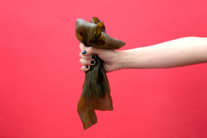AGA a new algea material. AGA is a material research to replace plastics. It is possible to dissolve the material trough heat and cooking water.