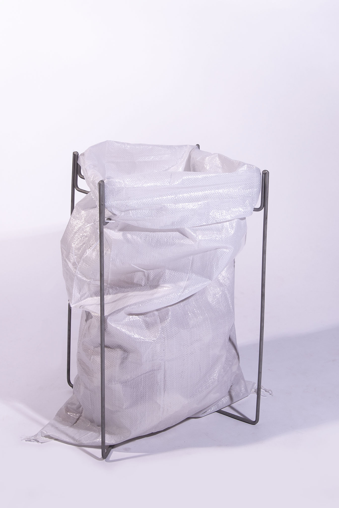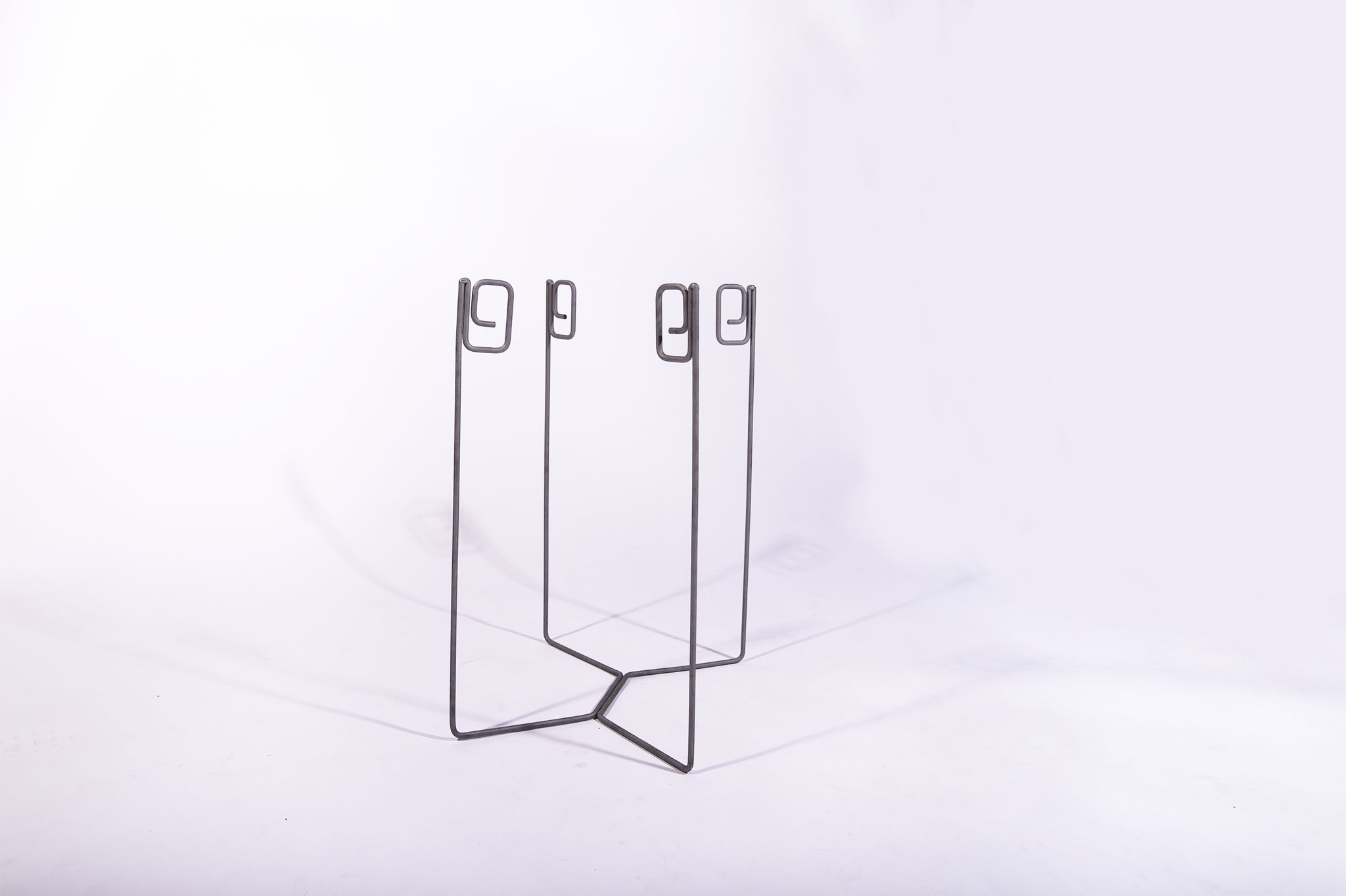 Holder is inspired by a standard construction tool. The pole is normally used for different attachments and is embedded in the ground. This shape is now the key element of the Holder, a plain rubbish bin. Four metal sticks are welt together on the ground and can perfectly hold a standard 60 liter trash bag. The open shape of the bin, is with and without a bag attractive. But the contrast between the rough indutrial steel and the refined plastic bag gives every working room a refreshing detail.