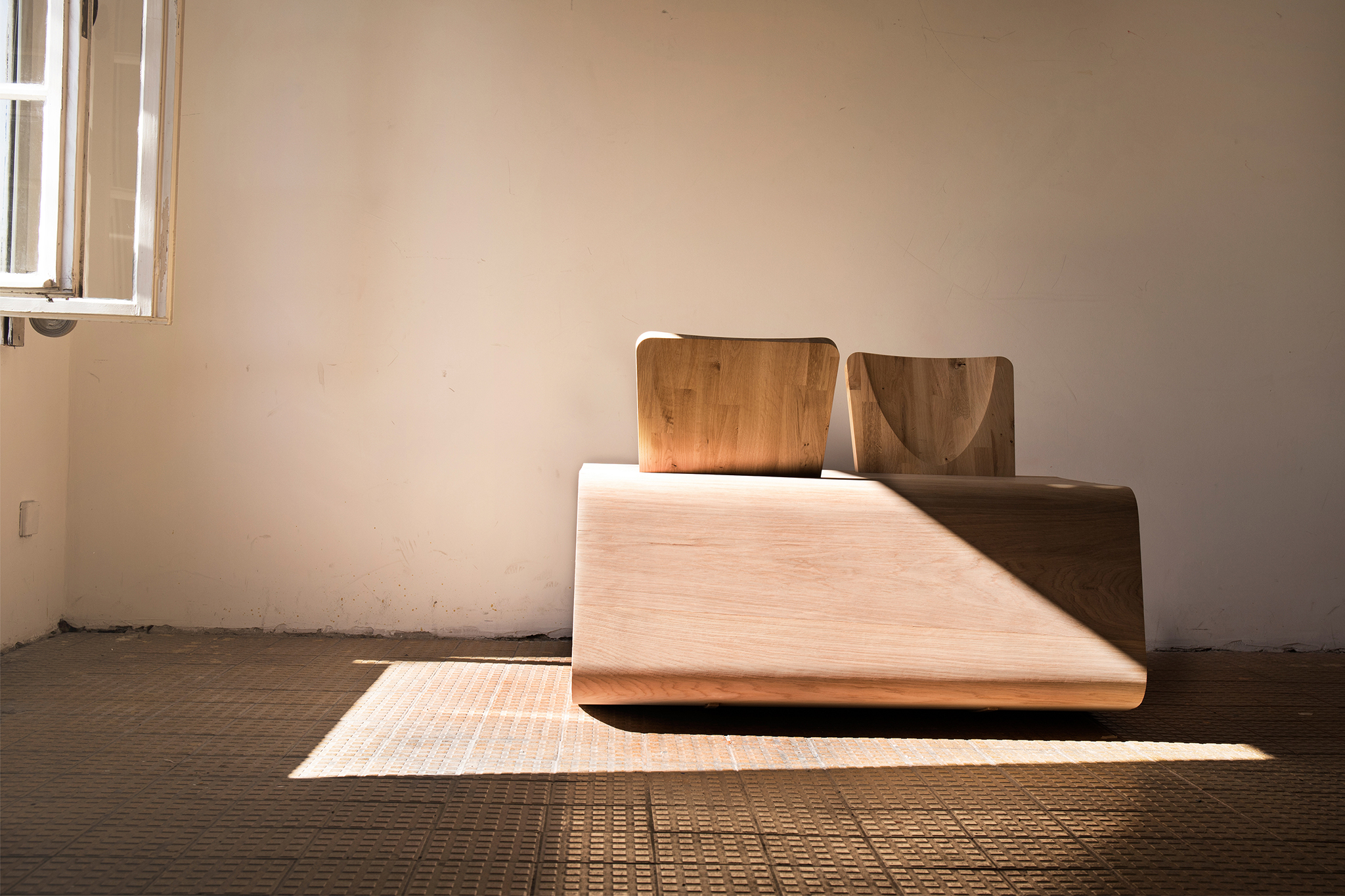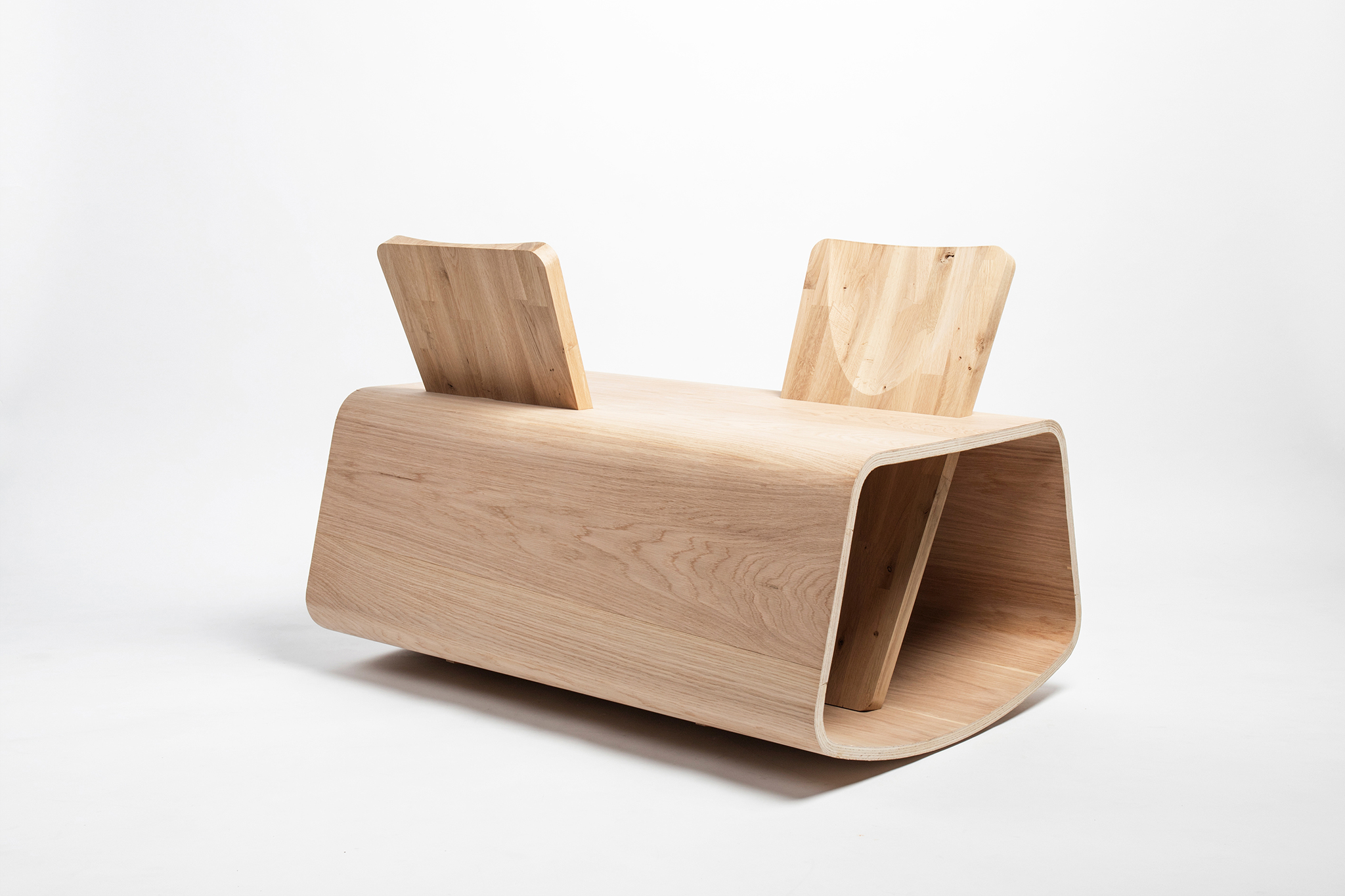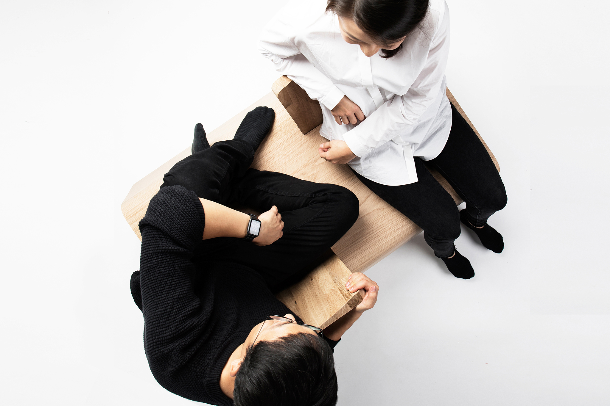 „MAZU“ is a chair on which the two sit together. This chair uses the principle of a swing that moves back and forth and is playful. Playing is an interaction where people can experience the same things together and feel the same feelings. So I tried to trigger human interaction through a chair with play. In addition, the two sit in vis-à-vis, which makes it easier to face each other and to control their movements through the balance and interaction of the two seated. In these „cooperative“ gaming devices, the joy of the additional interpersonal interaction is kindled in us. As a medium, „MAZU“ will interact with two seated people and enhance communication. „MAZU“ is not only a chair, but also acts as a trigger that triggers the emotions of the people.