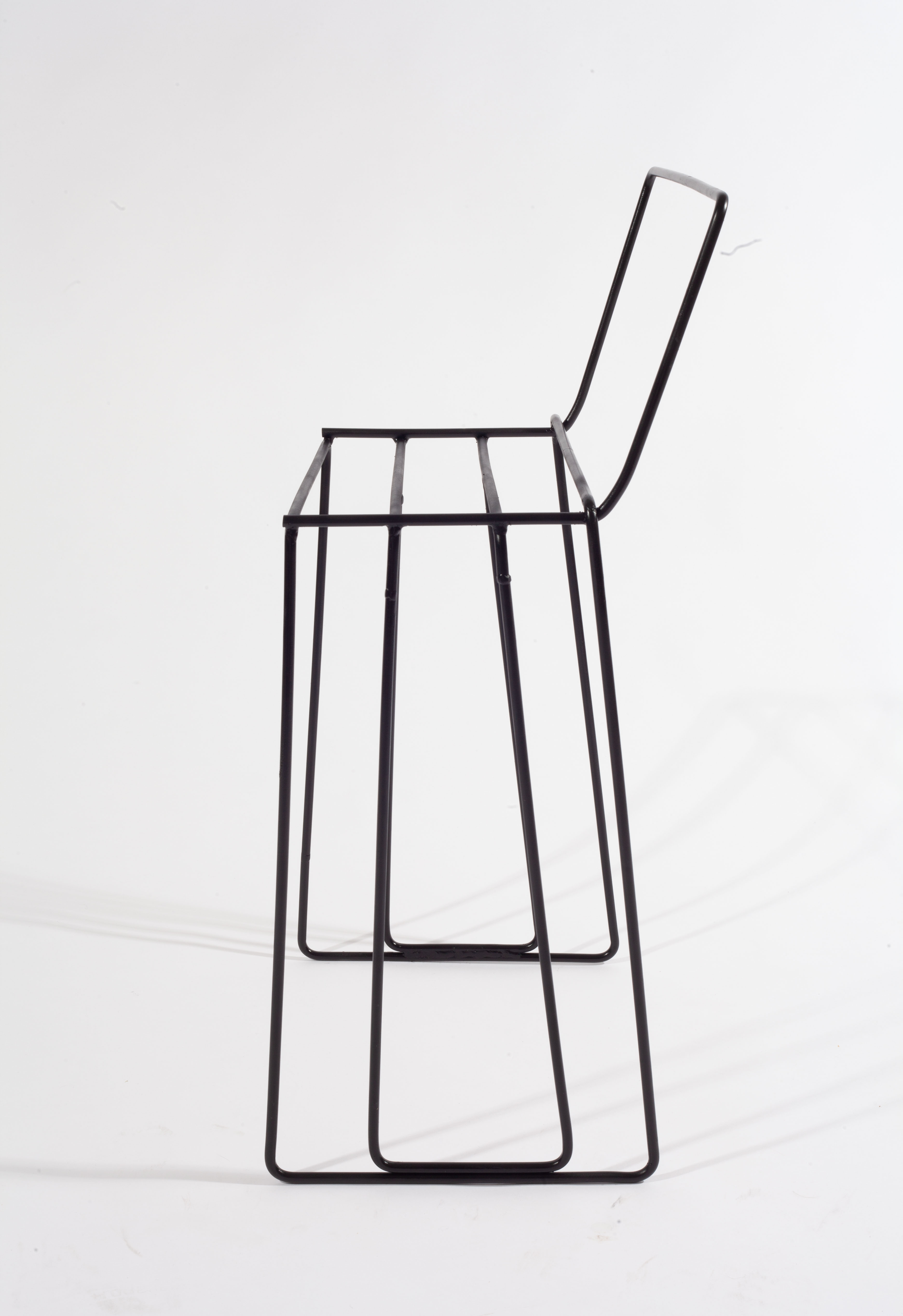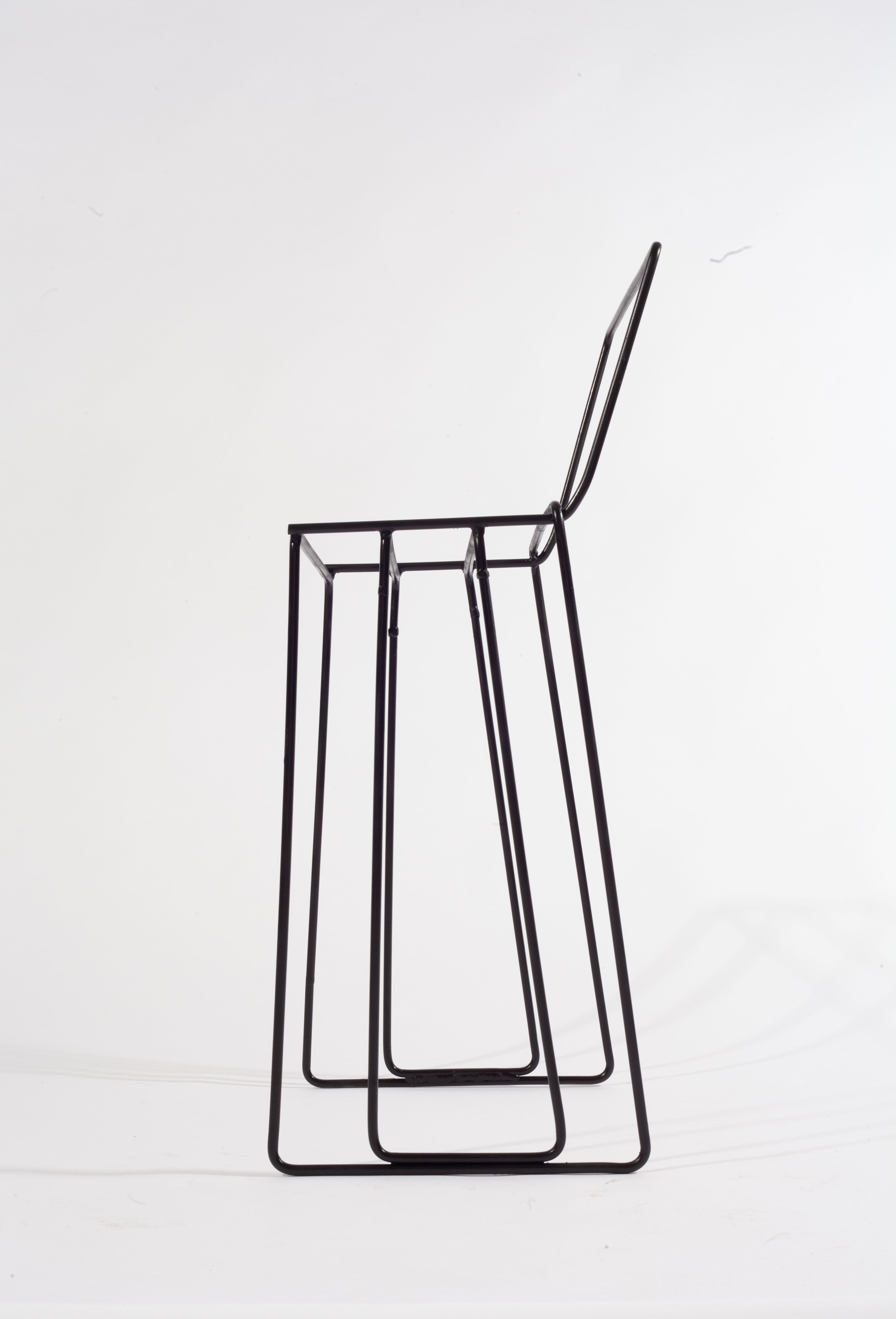 Normen is a stool/chair hybrid object, inspired by our urban landscape; a built environment that is given its shape by repetitive forms and structures. These standardised structures, such as scaffolding or bicycle stands, are shaped by a graphic repetition. The aim of Normen is to explore a possible physical translation of these reoccurring urban patterns.