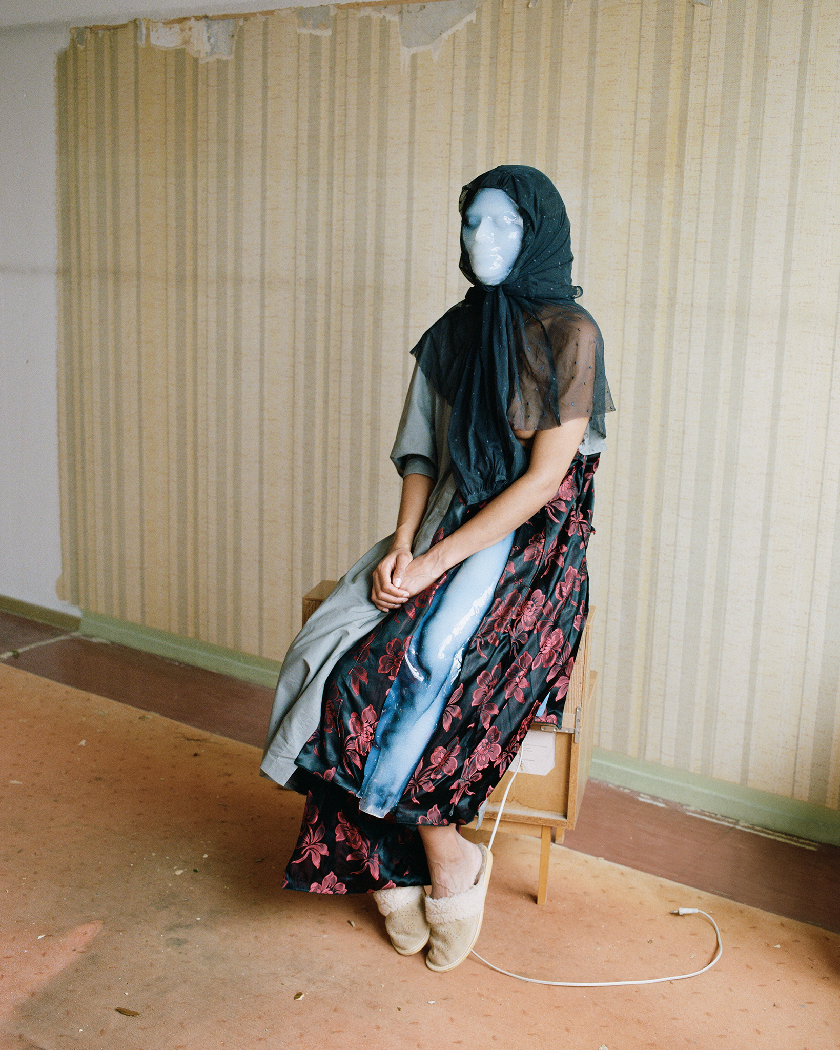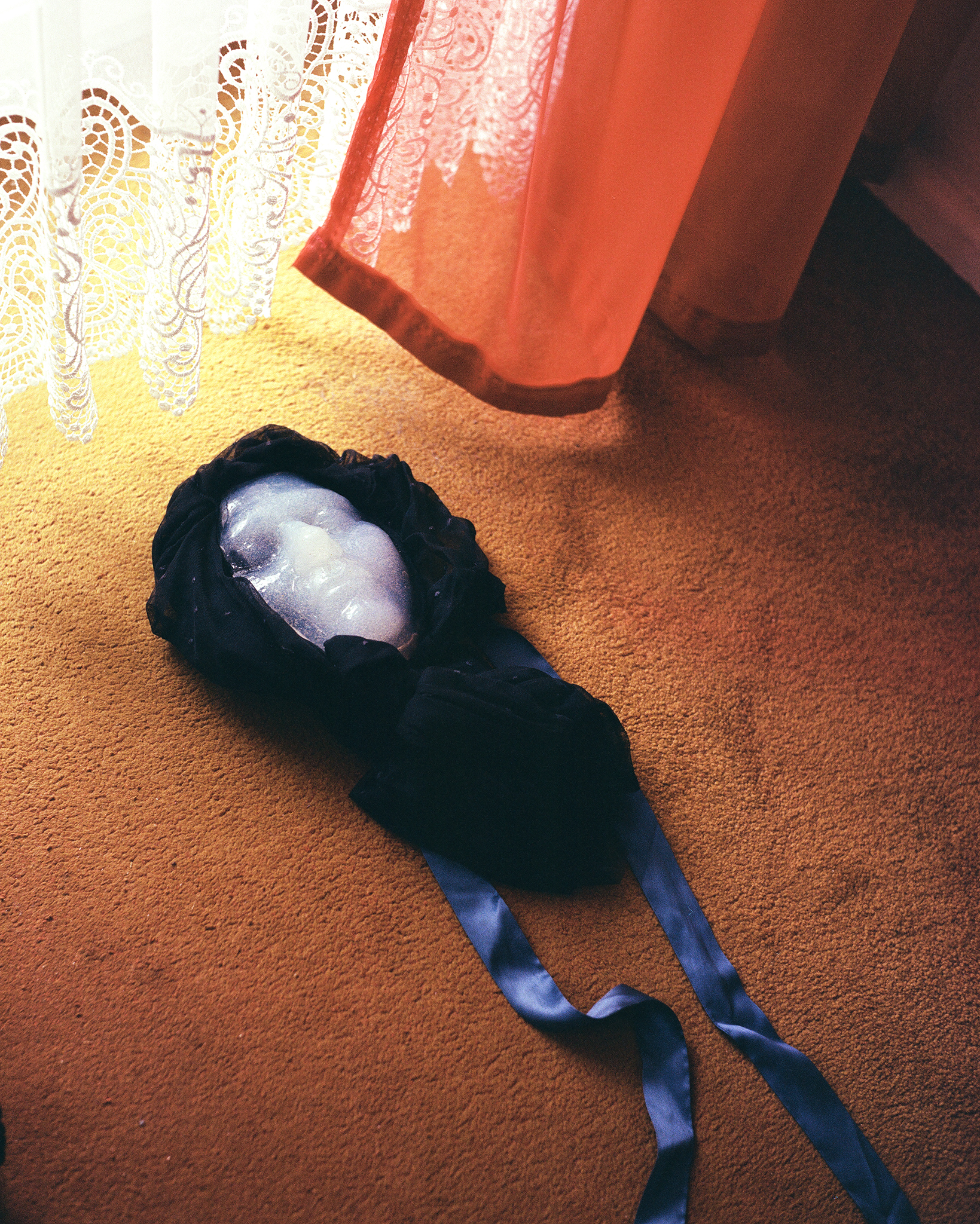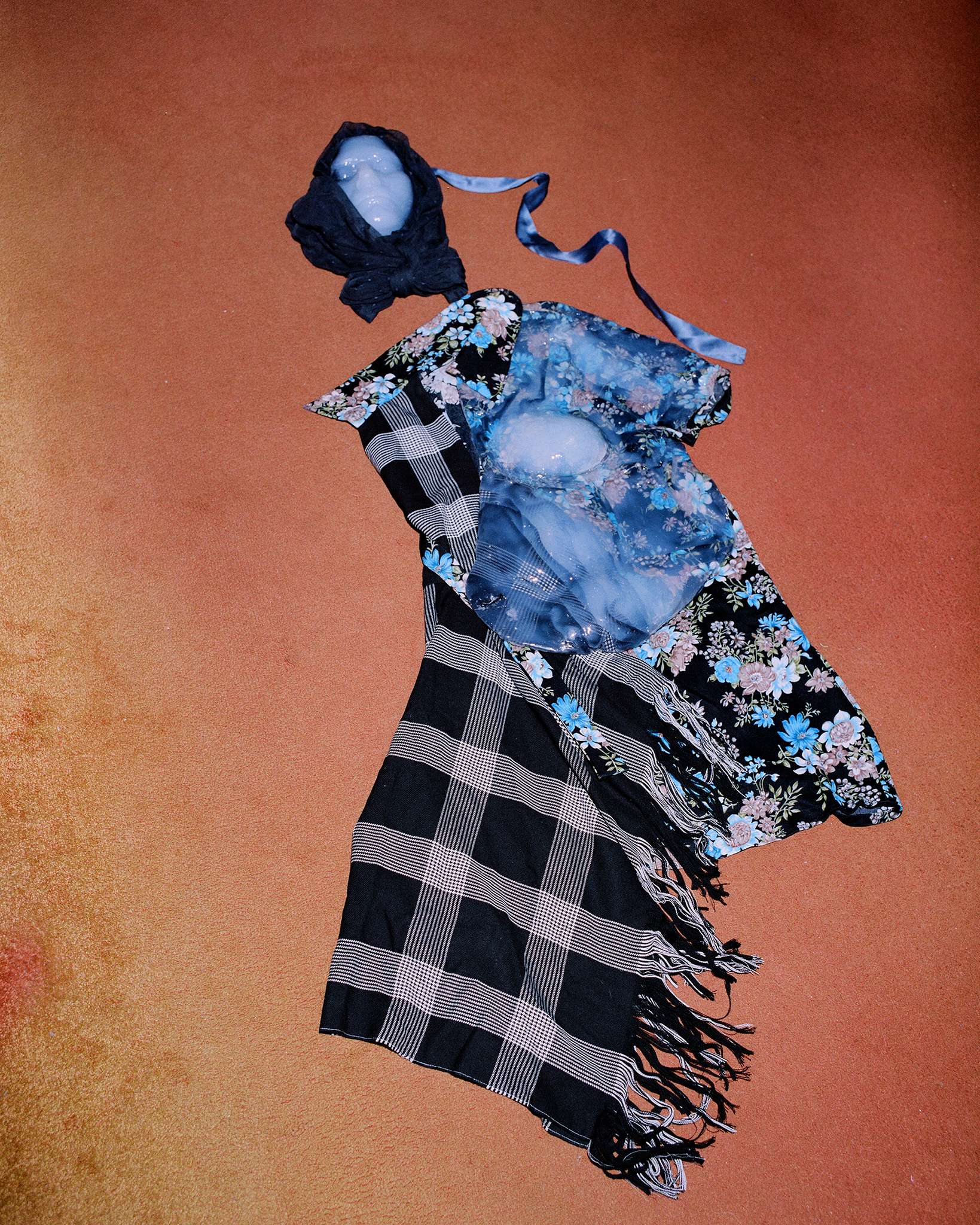 Nachlass, Erbe und Hinterlassenschaften. Wir bewahren sie auf, ehrwürdigen sie und lassen sie zu Platzhaltern werden. Einem Symbol dafür, dass die Verstorbene noch immer einen Platz in unserem Leben füllt. So bleiben Objekte nicht mehr einfache Dinge, sondern sie verschmelzen mit der Person, der sie ein mal gehörten. So tragen wir Kleidung Verstorbener und füllen diese mit uns selbst. Die Verstorbene an unserem Körper, Kleidung als 2. Haut, ein letzter Umriss, der Unser wird.