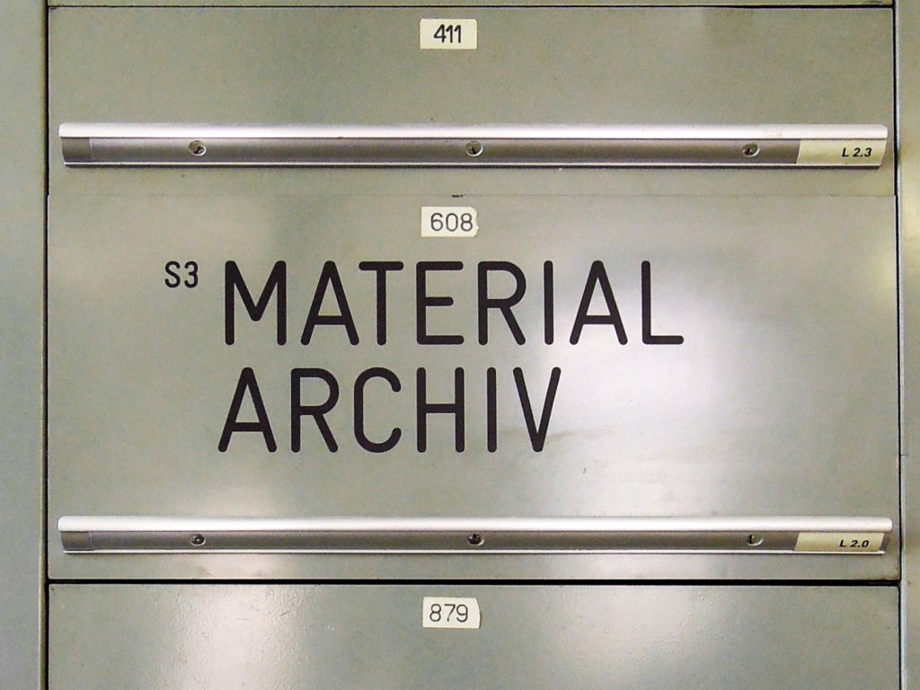 Das Schweizer Material-Archiv versteht sich selbst als Bildungsnetzwerk für Lehre, Forschung und Praxis. Es verfügt über eine umfangreiche Sammlung an Werkstoffen, welche es über eine online Datenbank weltweit zugänglich macht. Die Vermittlung des Wissens und der Materialien selbst, erfolgt über die physisch-erfahrbare Sammlung. Drei Standorte der Sammlung (das Gewerbemusuem in Winterthur, die ZhdK im Toni Areal Zürich und das Sitterwerk mitsamt der Kunstgiesserei in St-Gallen) besuchten wir im Rahmen des Entwurfsprojekts, um die Vielfalt und Anziehungskraft die diese Sammlung auf Gestalter jeglicher Couleur ausübt selbst zu erfahren.