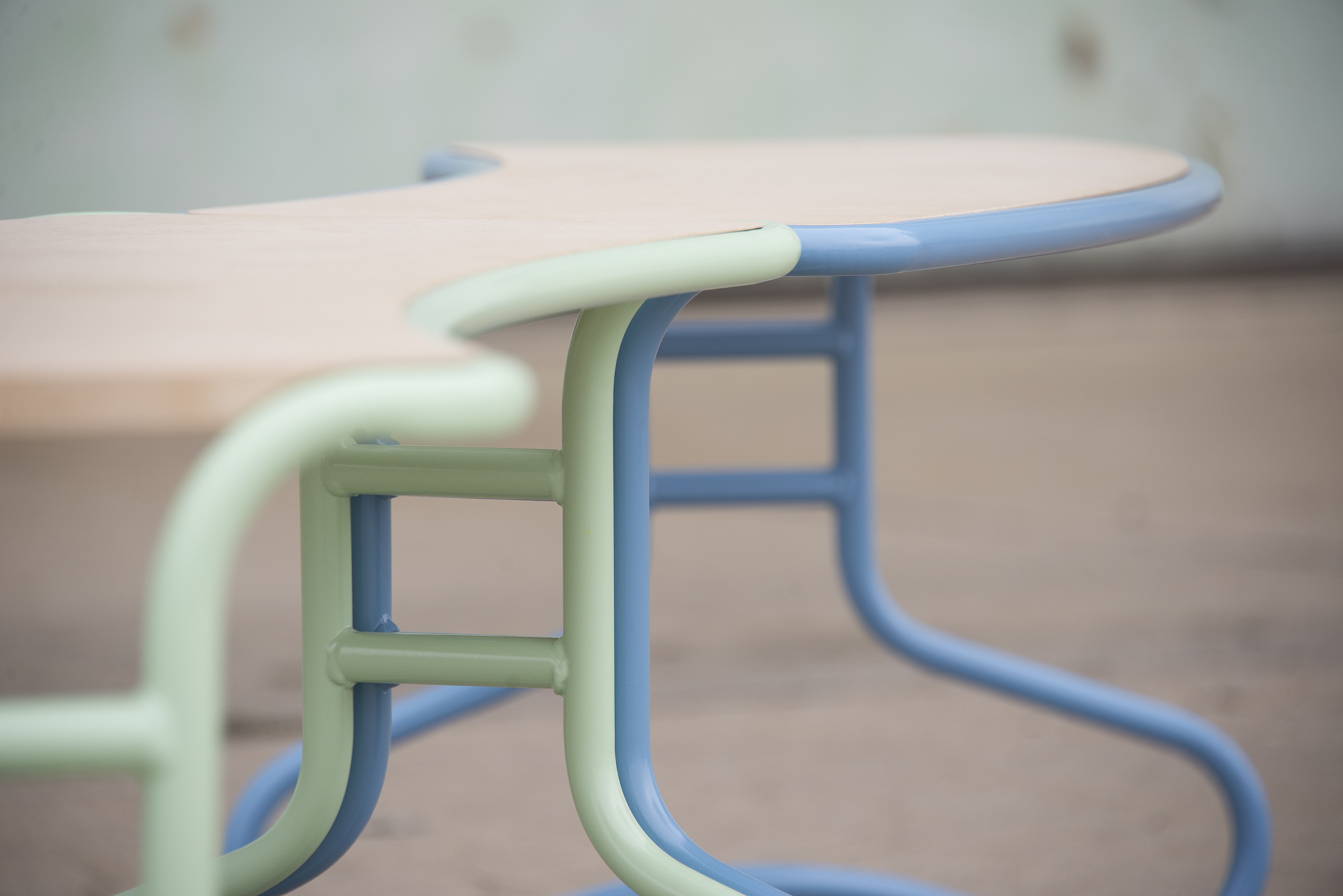 Sitcom steht für “Sit & Communicate”, denn hierum geht es. Die Rundung der Bänke macht es möglich sie zu einem Kreis zusammenzustellen – der Beginn einer jeden Gesprächsrunde. Je nach Bedarf können größere Formationen erstellt werden. Das Design von Sitcom ermöglicht flexible Sitzstrukturen für unterschiedliche Gelegenheiten, z.B. im Kontext von Workshops. Feste Formationen benötigen einen Verbinder um den Aufbau zusammenzuhalten. Anders als herkömmliche runde Bänke ist Sitcom mobil und stapelbar. Sie ist durch die Wahl von nachhaltigen und neuen Materialien extrem witterungsbeständig und komplett recyclebar.