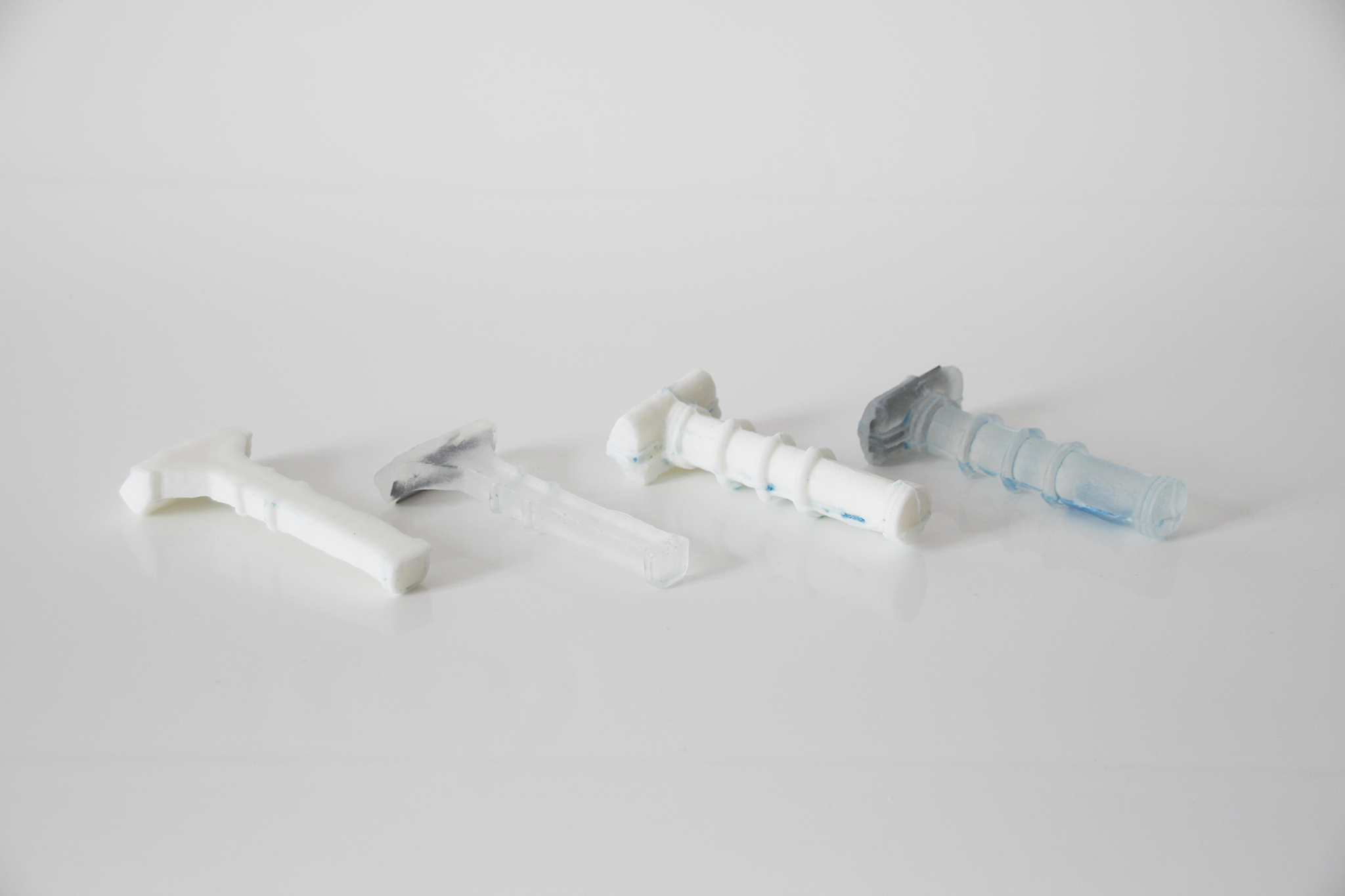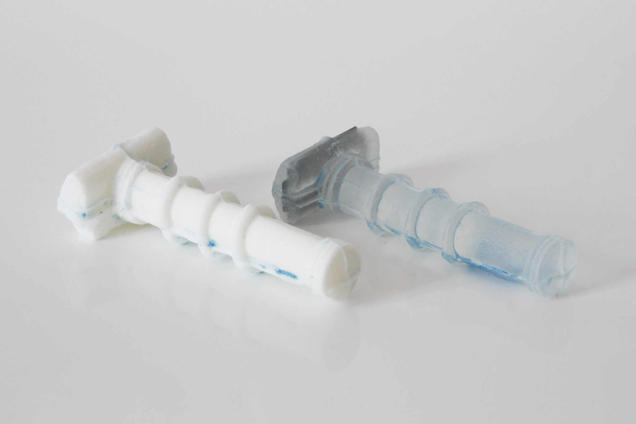 erazor deals with the masses of disposable razors that are thrown away every day. 2 460 000 000 are disposed of annually in the US alone. They are used for a maximum of 10 shaves before the blade is dull. However, both the metal of the blade and the plastic of the handle decompose only very slowly and because they are glued together they can not be transferred into recycling cycles. So why do we use such long-lasting materials for products with such a short period of use? Could one design a disposable razor that exists as short as it is used? A real „disposable“ razor that dissolves?