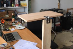 Working long hours sitting on the desk is unhealthy. High desks have shown to be a good alternative and help reduce back- and neck pain. But most people still want to be able to sit normally. Some products add height to a table but also take up way too much surface space.