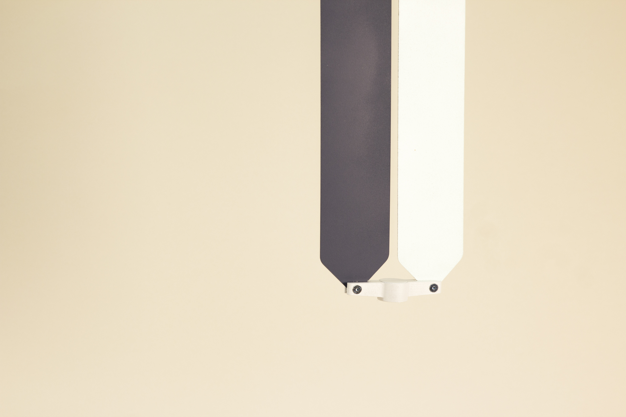 Flör ist ein Ventilator, ist eine lebendige Skulptur im Raum. Je nach Geschwindigkeit verändert sich der durch seine beiden Bänder ausgeformte Körper. So wird der Ventilator wie wir ihn üblicherweise kennen, ein starrer Propeller wahlweise mit oder ohne Käfig, entmaterialisiert. Die Natur der Materialien und die Bewegung an sich gestalten die Form des rotierenden Körpers.