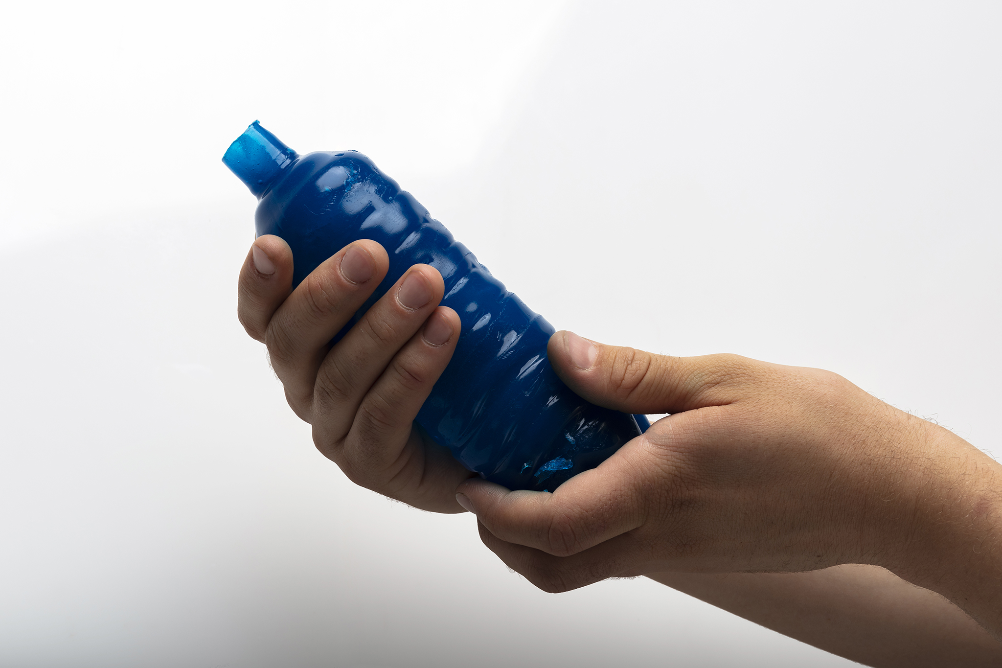 Die Flasche behält ihre Form solange sie gefüllt ist, was außerdem dazu führt, dass sie sich langsam im Wasser löst. Leer vertrocknet die Flasche und schrumpft zusammen.