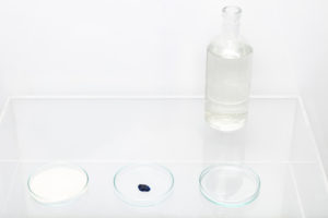 Agaragar is a galactose-polymer. It is made from different kinds of algaes (especially red algae). Throught cooking it with glycerin and water “bioplastic” is created. It is used as a gelling agent for cooking and baking as a vegan alternative to gelatine for a long time already. For a while now it is used in design as an alternative to plastics. Many designers are mysterious and do not want to share their recipe for their “bioplastic.”