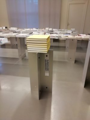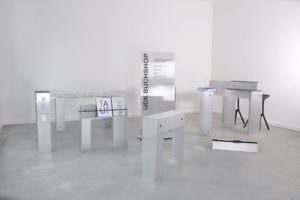 The system allows to storage a hole spatial arrangement in less then one square meter. Different numbers of profiles guarantee various object compositions + solutions. Use the profiles as component for realising different styles of bookshelfs, sideboards or table constructions. We are happy to launch the system at the UdK Pop Up bookshop during Rundgang 2019.