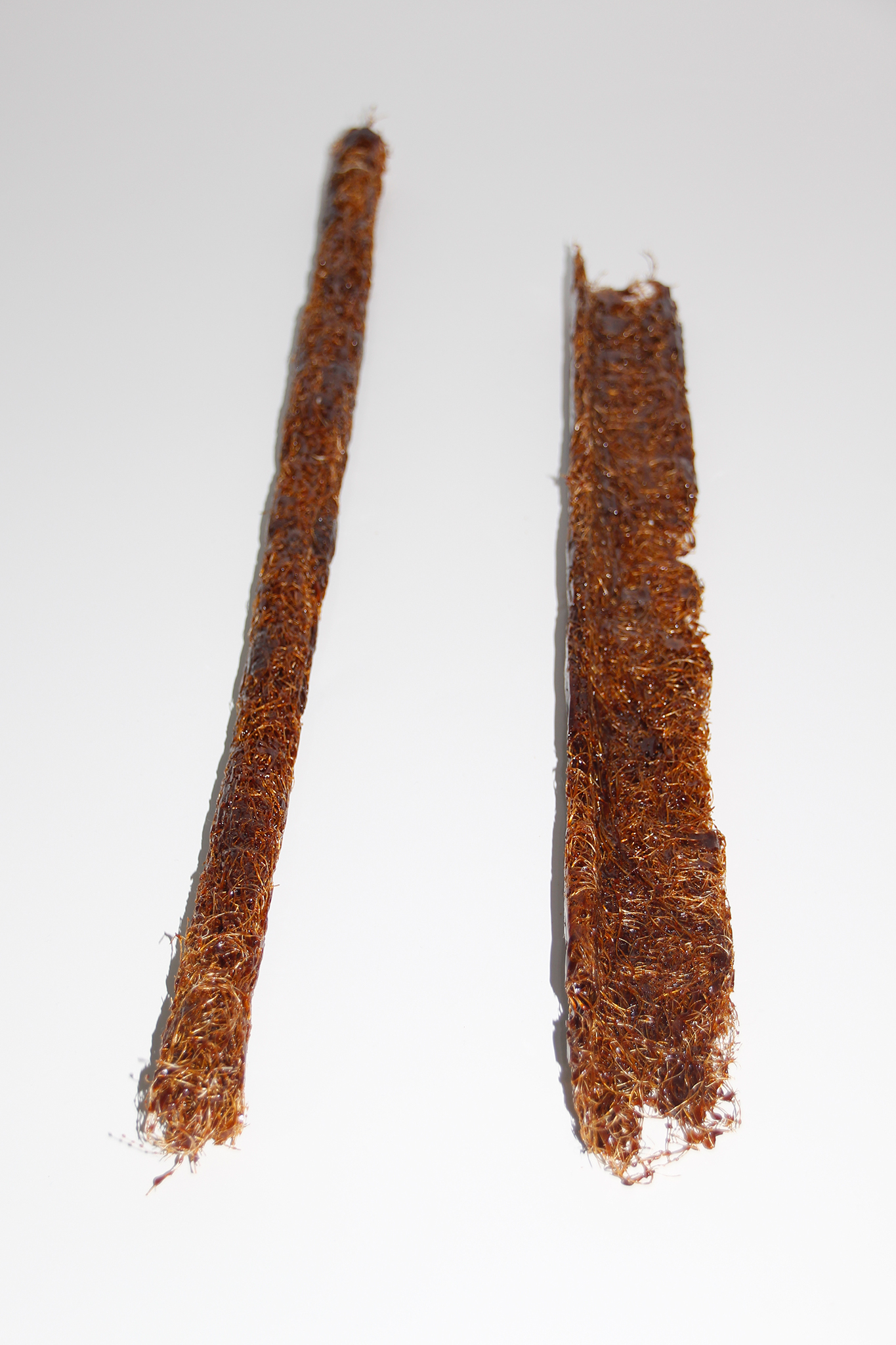 Si E904 is a composite of sisal fibers with shellac as a binder. Shellac, which is otherwise known only as a wafer-thin lacquer, is used here in excess and in combination with the sisal fibers produces an extremely robust and dimensionally stable material. Shellac is a resinous substance and the excretion of a scale insect (Kerria Lacca). For 1kg of shellac, the excretions of about 300 000 lice are needed. In sharp contrast is the sisal fiber, which is the fifth most used plant fiber in the world at 428,000 tons per year. Both materials are quite brittle in their own right but when combined under heat and pressure they form a very strong composite.