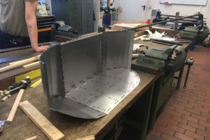 Die Konstruktion des Anhängers soll aus mehreren ausgelaserten und gekanteten Blechelementen bestehen. Die Verbindung der Blechteile soll aus dem Material ohne zusätzliche Verbindungselemente erfolgen (z.B. durch Laschungen). Kantungen werden durch gelaserte Perforationen vereinfacht. Die Fertigung der Blechabwicklung erfolgt durch unseren Projektpartner Ferrum Lasercut GmbH.