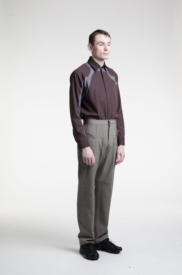 Als Ausgangspunkt wurde ein klassisch konstruiertes und gefertigtes Sakko verwendet. Dieses wurde dann – ähnlich einer wissenschaftlichen Arbeit am Körper – ’seziert‘, also auseinander genommen und in seine Einzelteile zerlegt. Mit Hilfe dieses neu erlangten Wissens, und unter Anwendung traditioneller Handwerkstechniken sollten die Studierenden ein Sakko (im weitesten Sinne des Wortes) als Teil einer Kollektion von 3 Outfits fertigen, sowie eine Kollektion von 8-10 Outfits zeichnen.