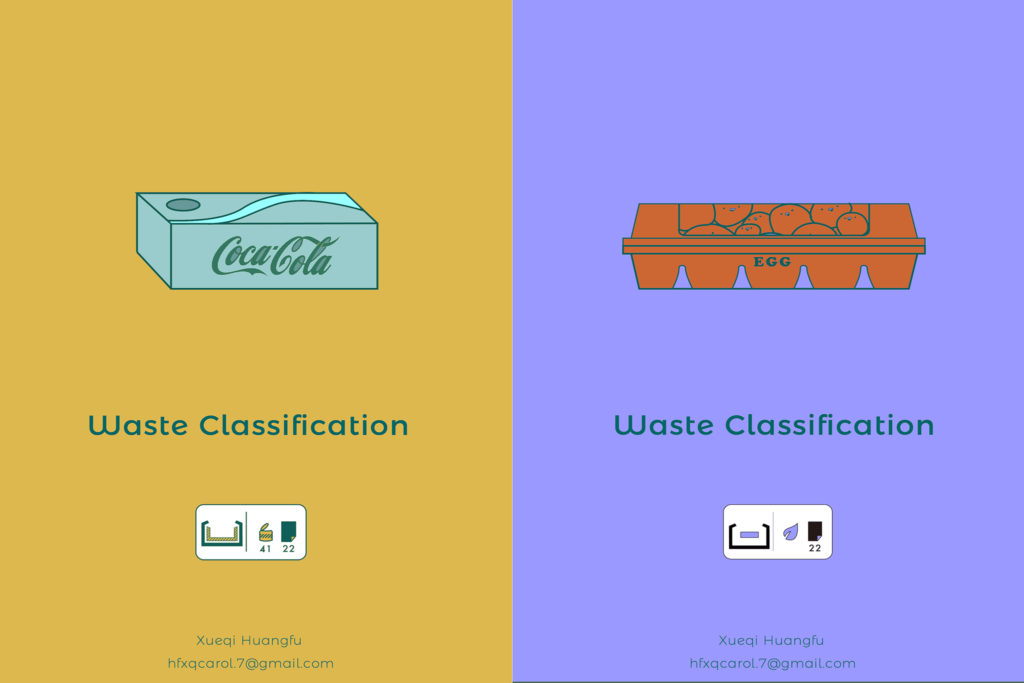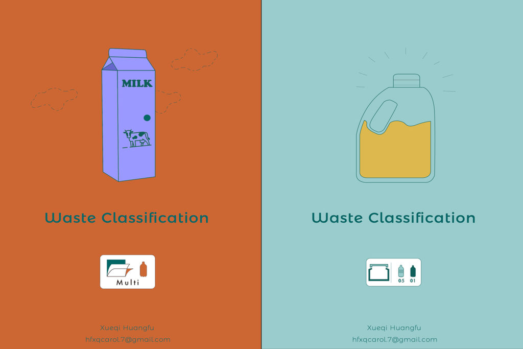 The key to waste classification is not how many garbage cans to set, but how to distinguish garbage materials accurately and efficiently. My Design is to add graphics or simple labels on the outer packaging of the goods so that users can directly identify the materials of the goods, and always throw the garbage into the correct garbage can.