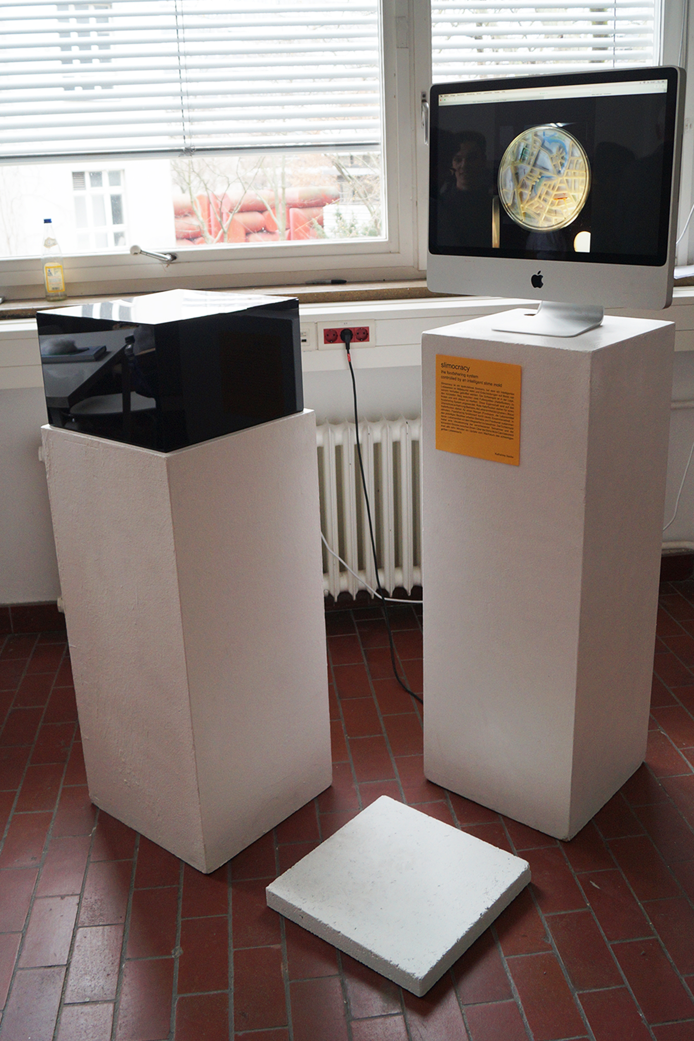 Slimocracy is a speculative scenario. An intelligent slime mold is the centre of this project. The actions of people depend on the development of this intelligent Organism. The Slime mold is able to find the shortest path between two places.
