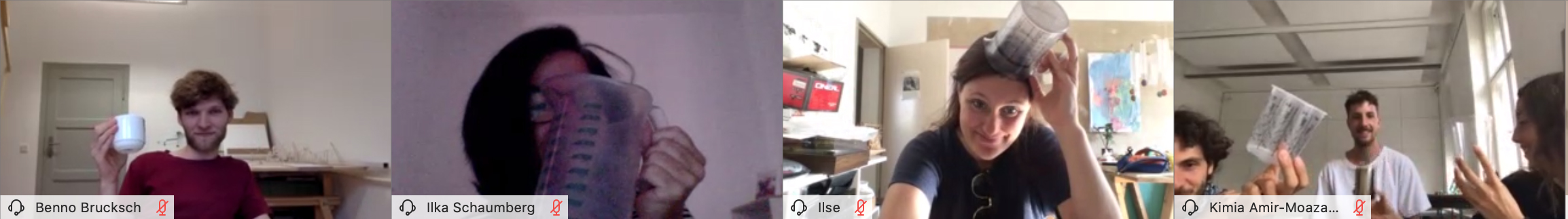 Das Gespräch begann zunächst sehr interessant, unser mitgebrachtes Objekt war ein Messbecher, der vertretend dafür stand, dass Mischer’Traxler in ihrer Arbeit wichtig ist, Daten und Zahlen greifbar zu machen. Der Kairos sozusagen, bei dem Informationen in ein Erlebnis umgewandelt werden, dadurch weniger abstrakt werden und somit das Bewusstsein schärfen. Die Daten helfen ihnen auch bei der Formgebung der Objekte, was den Gestaltungsprozess auf eine hilfreiche Weise Einschränkt bzw. genaue Vorgaben macht.