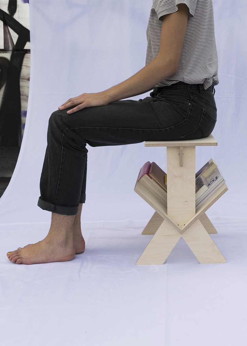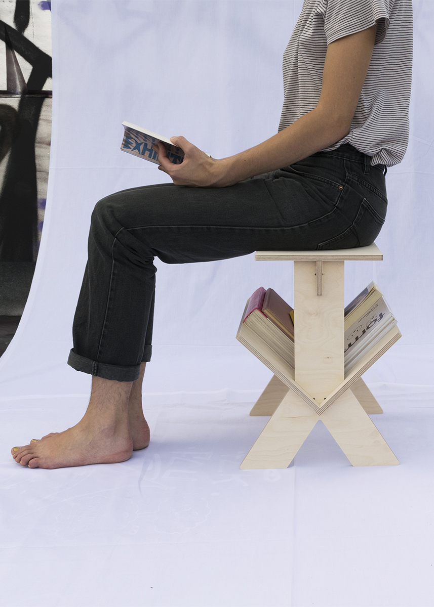 Book Stool is a stool that supports the topic of intuitive storage and gives our books we are reading a place. At the same time, it retains its function as a stool and offers a seat when there aren’t enough chairs.