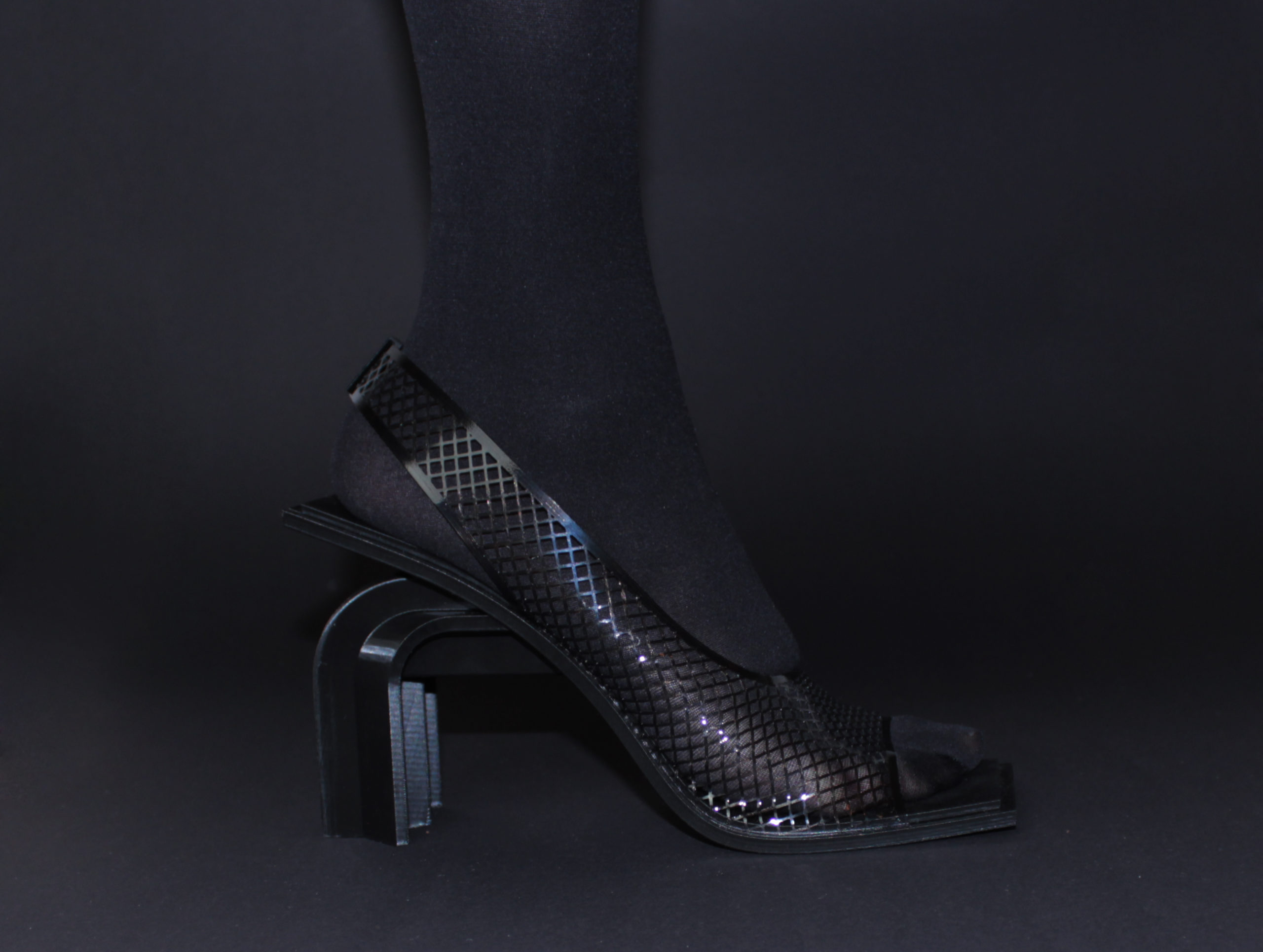 In meiner Bachelorarbeit „Hiheel“, setze ich mich mit dem Gedanken auseinander, generische Typologien und Herstellungsweisen von Stöckelschuhen zu untersuchen und diese mit Hilfe der 3D-Druck-Technologie neu zu definieren. Durch diese Arbeit sollen neue Beispiele einer Formsprache und neue strukturelle Möglichkeiten entstehen. Ich wollte schon immer Schuhe herstellen, beherrsche aber nicht das Handwerk des Sattlers oder Schuhmachers, geschweige denn den Zugang zu den benötigten Maschinen und Werkzeugen. Durch 3D-Druck kann ich mir dieses Objekt erschließen und auf meine persönliche Art und Weise denken und gestalten. Die 3D-Druck-Technologie gehört zu den Rapid Prototyping Technologien, also zu den Fertigungsverfahren, die das Ziel haben, CAD-Daten möglichst ohne manuelle Umwege, direkt und schnell in Werkstücke umzusetzen.