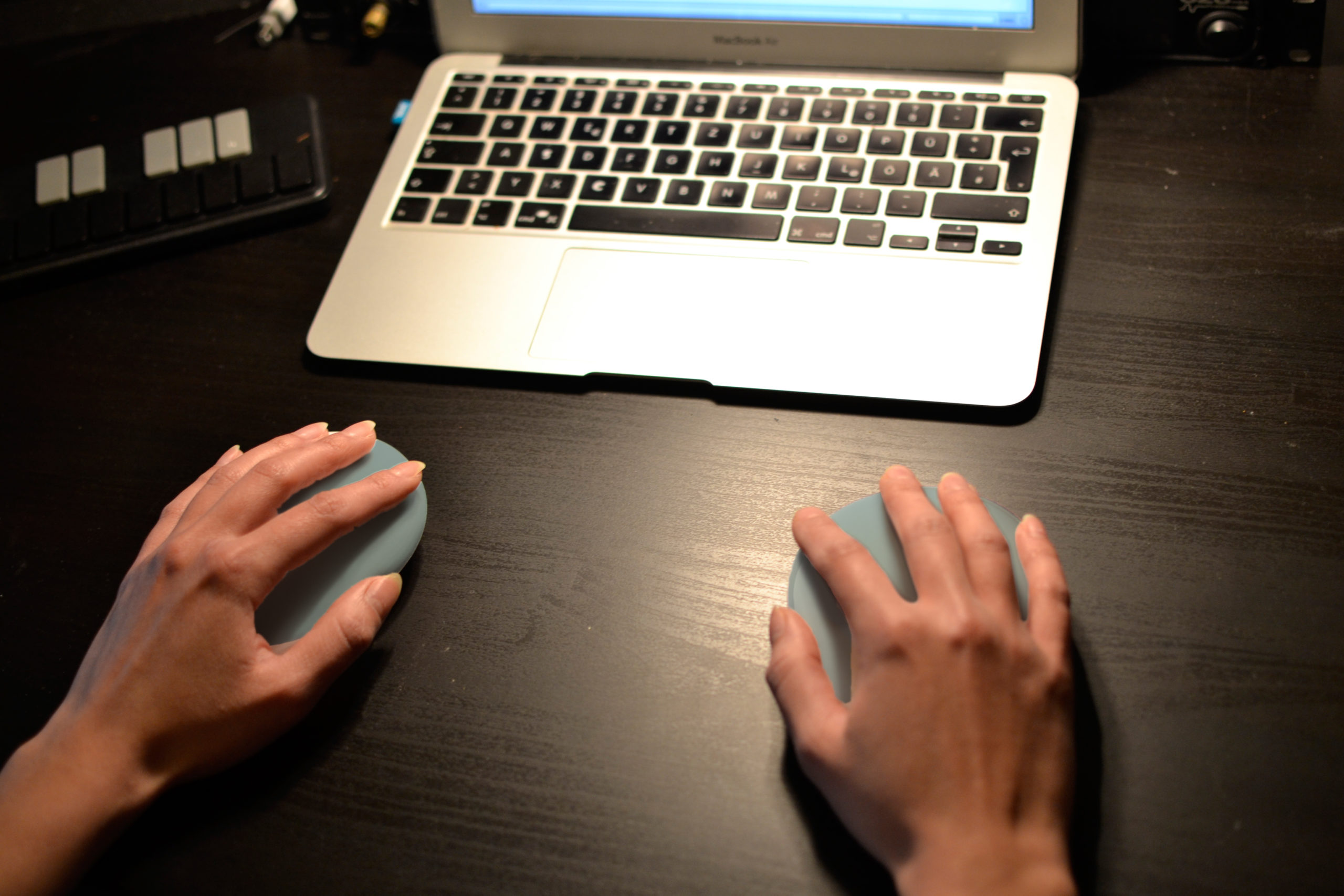 NALU connects wirelessly to a computer transmitting measured brainwaves using an EEG headband and translates these to MIDI signals that commence a previously assigned digital instrument within a DAW. Resting your hands upon the controllers only minimal motion is required to activate touch controls assigned to DAW commands such as delay, reverb or similar sound modulations as well as additive sound effects like kick, snare or drums. Throughout the process of brainwave and thereby sound generation one is able to either modulate while concentrating or after recording one of the four measurable brainwaves.NALU is a musical instrument that supports music production using brainwaves and creates a connection between meditative concentration and sound generation.