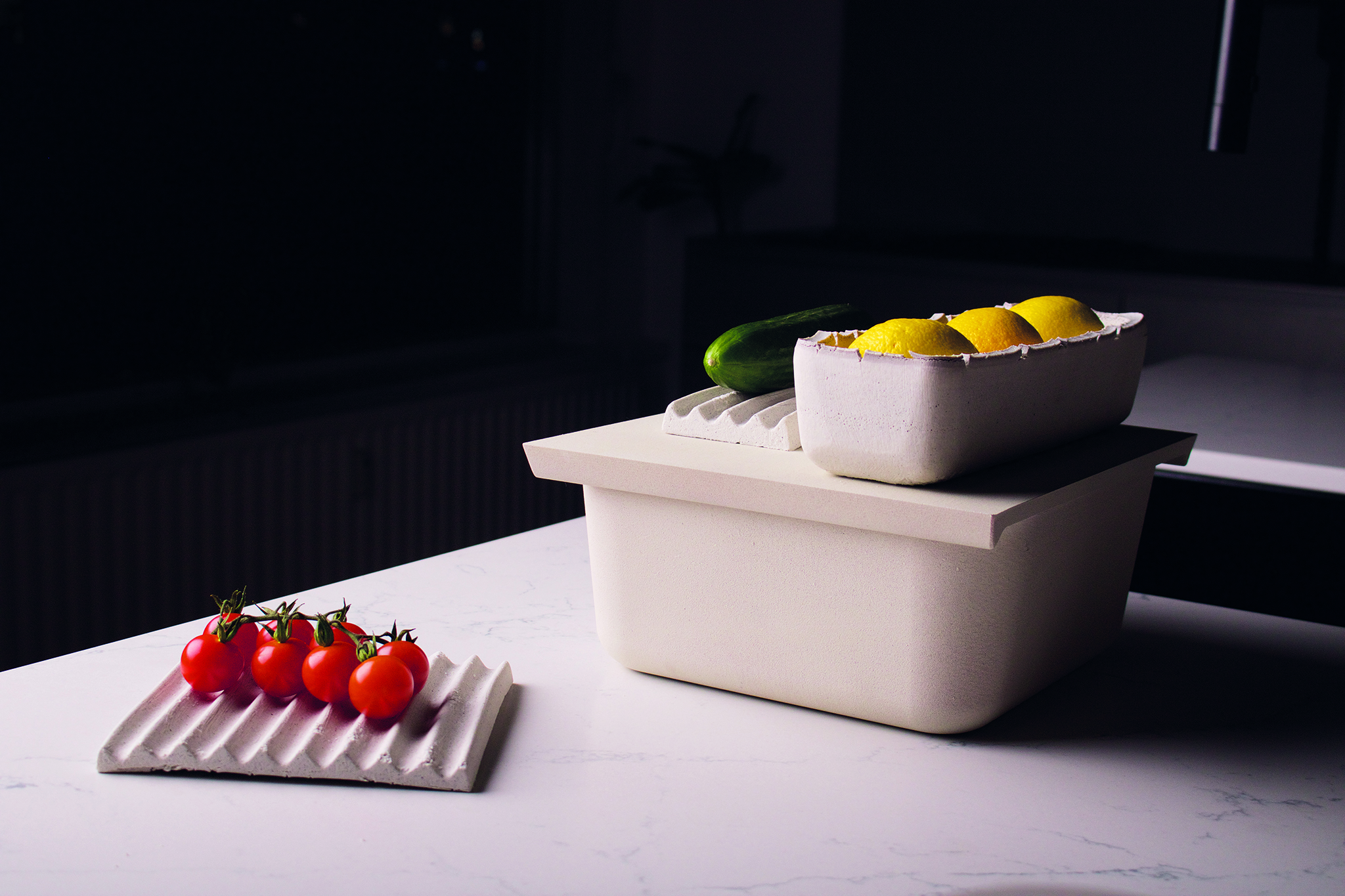 The aim of this work was to recycle porcelain waste and to find a sustainable product solution. A method was developed to recombine old porcelain shards by grinding and sintering to a solid material that is made from 100% recycled material. This material offers properties such as strength and porosity that are suitable for food containers: RELICS are containers made from this recycled porcelain, which enable fruit and vegetables to have a longer shelf life. A tray absorbs cold water through the porous structure by holding it under the tap. If this is then placed in the container, the inner space cools down and the air humidity rises. Due to this physical process of evaporative cooling, the container have a cooling effect. With certain foods such as tomatoes, apples or beets, these conditions ensure gentle storage and have a positive effect on shelf life and quality. The humid climate in the containers also protects certain types of vegetables from drying out. If the tray is not watered, there is a dark, airy, dry climate at room temperature. Then the container forms a storage option for fresh foods that are sensitive to the cold, lose their aroma due to the cold or have to ripen briefly. The containers thus offer optimal climatic conditions to extend the shelf life of fruit and vegetables and reduce food waste.