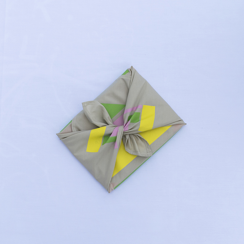 In contrast to conventional wrapping paper, the fabric packaging can be reused as often as you like. The various geometric shapes and cheerful colors creates a pattern, which can be used as a playful guide for various packaging techniques.