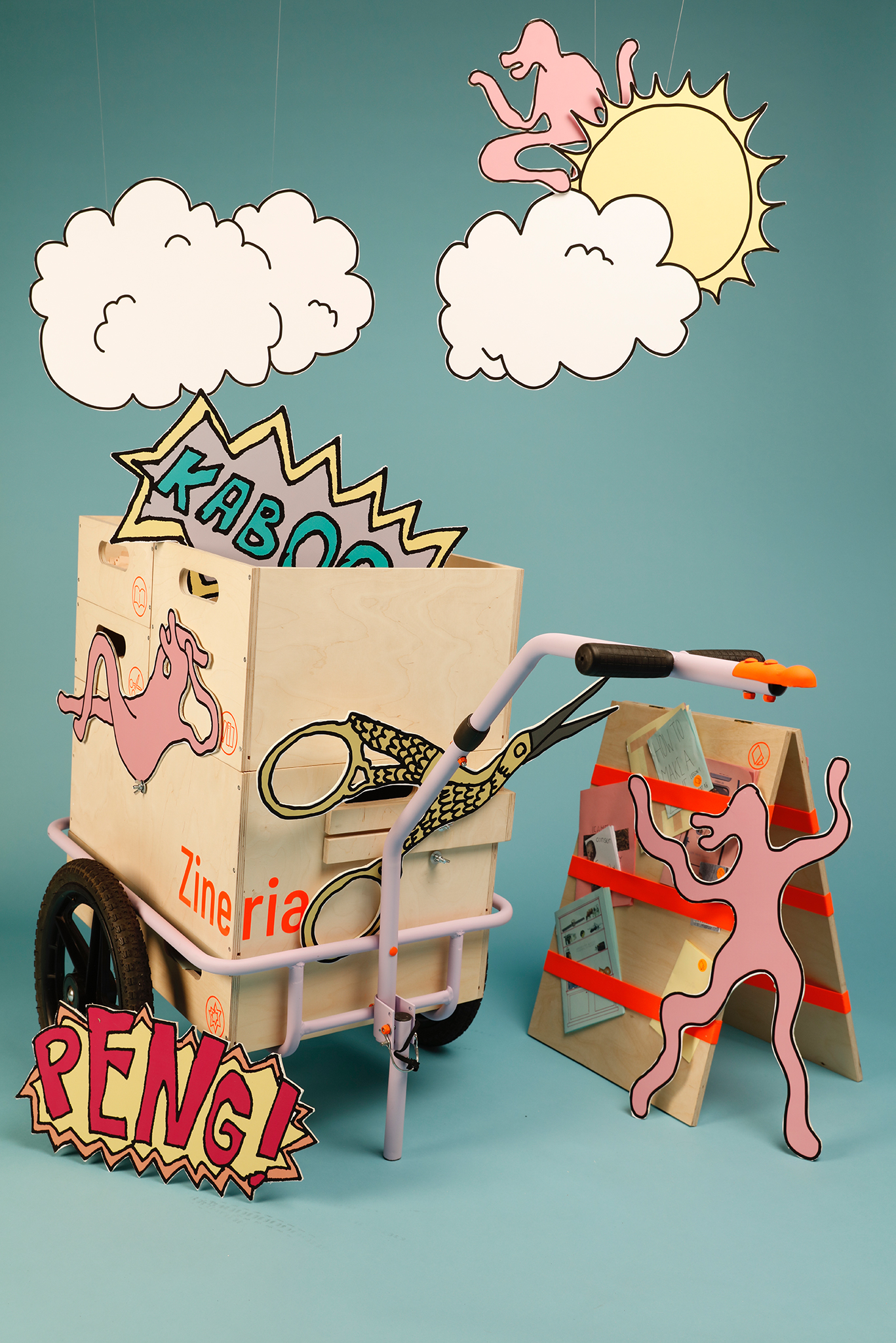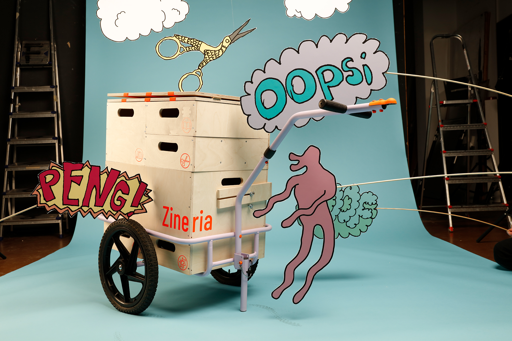 We design and publish zines: colorful magazines that are published by self-appointed authors. The many personal stories and visions, always told from the perspective of the authors themselves are creating visions and dreams for public space. The Zineria has settled at Tempelhof Airport and offers the opportunity for sharing thoughts and ideas about that place.