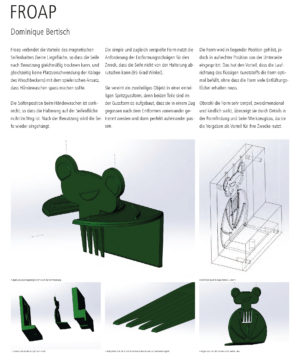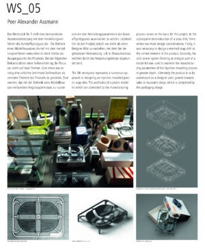 Kunststoffspritzgussteile haben für Produktdesigner eine besondere Bedeutung – ein großer Teil der aktuellen Produktwelt besteht aus Kunststoffen. Wegen dieser großen Bedeutung dieser Werkstoffgruppe ist es besonders wichtig, die essentiellen Parameter dieser Technologie zu kennen und zu beherrschen. Aufgabe für die Studierenden war der Entwurf einer Aufbewahrungs- bzw. Ablagemöglichkeit für ein festes Seifenstück. Die Entscheidungen über Konzept, Funktion und Form standen den Studierenden frei – die Einhaltung der Fertigungsparameter war verpflichtend. Parallel zur Design- und Konstruktionsentwicklung des Objekts hatten sie die Aufgabe eine passende Spritzgussform für ihren Entwurf zu konstruieren. Dafür war die Einhaltung folgender Parameter zwingend notwendig: