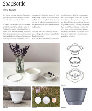 In Zeiten einer essentiell notwendigen Handhygiene spielt das Thema Seife und Händewaschen eine sehr wichtige Rolle in unser aller Leben. Die alltägliche Handhygiene ist zu einem sorgsam einstudierten Ritual geworden. Ein gründliches Händewaschen hilft die Verbreitung von Viren einzudämmen und bietet zudem individuellen Schutz. Auch hat die wachsende Kritik am stetig steigenden Kunststoffverbrauch zur verstärkten (Rück-) Besinnung vieler Menschen zu festen Waschstücken geführt. Die Flut von Kunststoffverpackungen für Flüssigseife wird zunehmend als ärgerlich und unangemessen empfunden. Der großen Vielfalt an Seifeninnovationen folgte jedoch eine bescheidene Entwicklung von angemessenen Ideen, die der Seife ein ebenbürtiges und passendes Zuhause liefern – wie die gute alte Seifendose oder Seifenschale. Die Studierenden des vierten Semesters Produktdesign haben sich mit diesem „Zuhause“ des Seifenstücks intensiv auseinandergesetzt und haben im Kontext der Beschränkungen einer Herstellungstechnologie Seifenbehälter und Ablagen entworfen. Zudem haben sie die Voraussetzungen für eine Serienproduktion ihrer Entwürfe entwickelt und in einen virtuellen Werkzeugbau überführt.