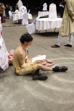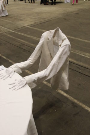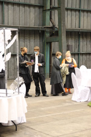 Im ausreichenden Abstand wurde jeder Studierende auf einem Tisch mit musikalischer Livebegleitung präsentiert. Projekte wurden in Performance am Tisch und im Videoformat dargeboten, sowie die neue Art zu studieren im ersten „Pandemiesemester“ in einem dialog-vorgetragenen Text resümiert.