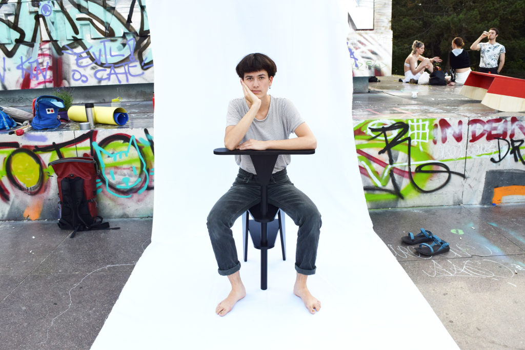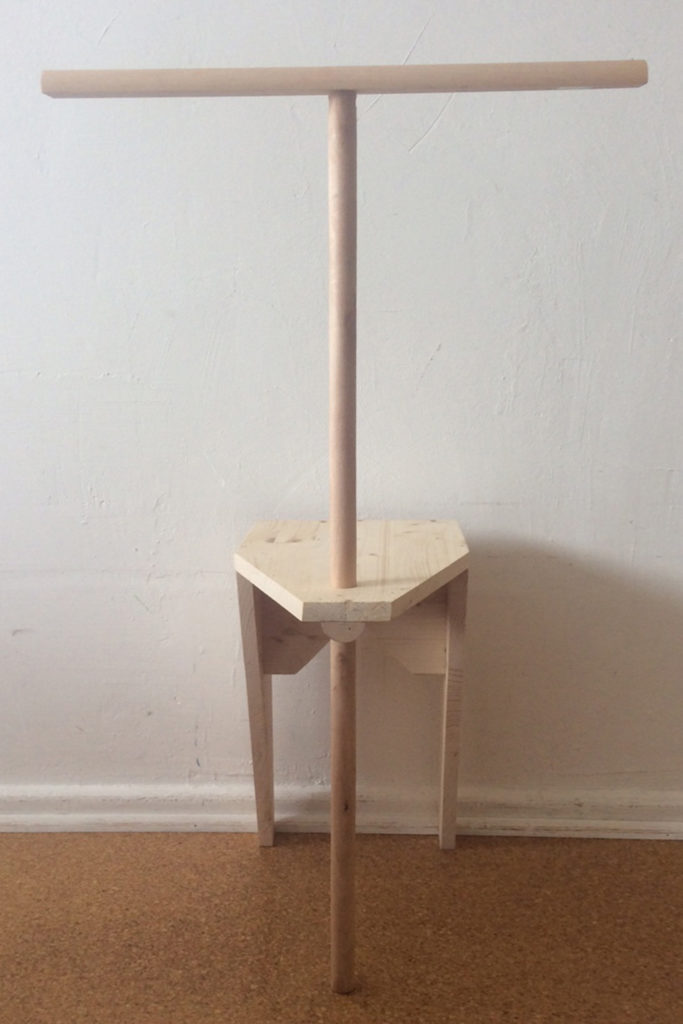 Sitting down to a person and listening with full attention and an open heart can be a strong gift. This stool allows the listener to place his arms comfortably on the handle in front, the back can relax and the focus is free to follow the one who is spilling the heart.