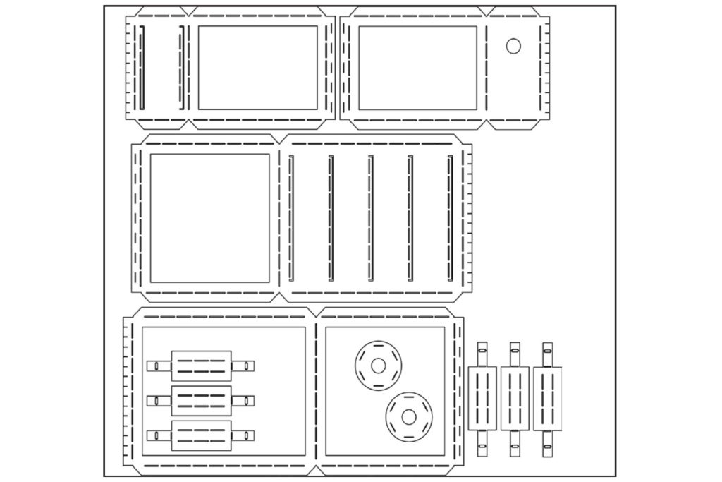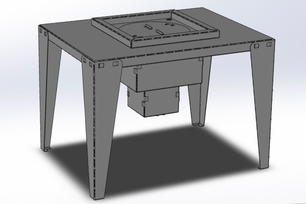 Die Abwicklungen der Blechteile wurden gelasert, konnten jedoch aufgrund der Tatsache, dass die Werkstätten für regulär Studierende geschlossen waren, noch nicht gebogen und zusammengesetzt werden.