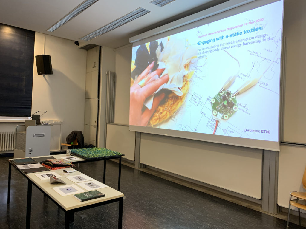 Ramyah Gowrishankar defended her doctoral thesis titled “Engaging with e-static textiles: An investigation into textile interaction design for shaping body-driven energy harvesting in the interior.” on 10 Nov 2020 at the UdK.