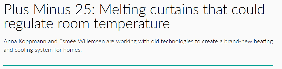 This realization led to their final Plus Minus 25, a temperature regulating curtain. The fabric of the curtain is printed with PCM that absorbs and releases heat to have a cooling effect in summer and a warming effect in winter, without using conventional devices or using any electricity.