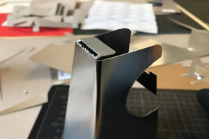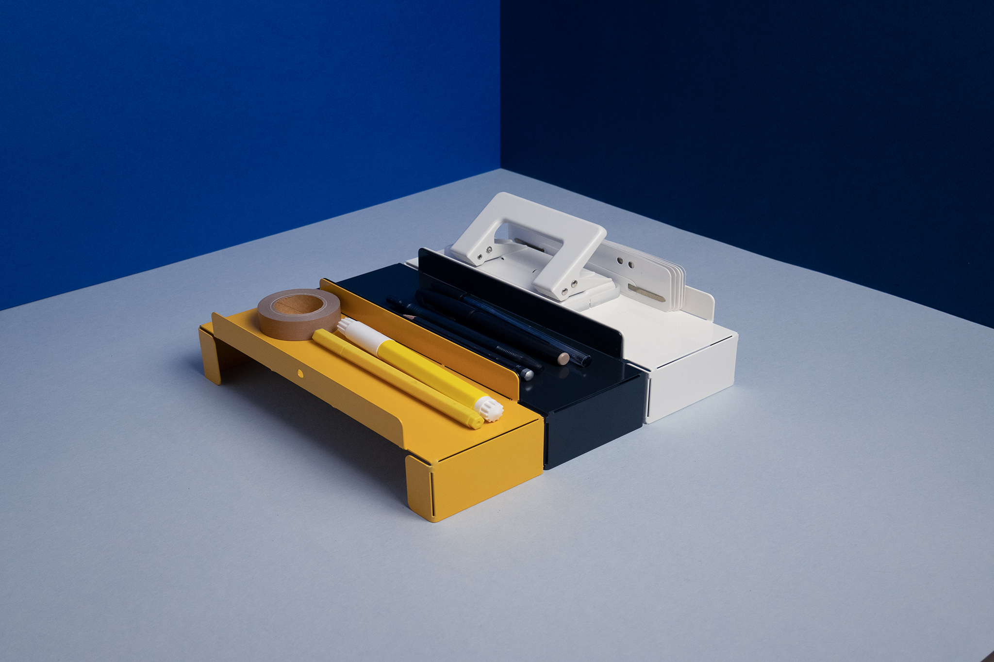 The project FOLD deals with the interrelated topics of goods logistics and the inclusion of the consumer side against the background of current production and distribution possibilities. The project is based on the principle of minimizing transport dimensions on the one hand and the prosumerism idea according to Alvin Toffler on the other hand. An attempt is made to achieve a combination of these two sides with the help of digital manufacturing processes. This is illustrated by the example of a product series made of flat metal, which can be produced by laser cutting and transported with minimal space requirements. The series involves the users as part of the production process: They fold the initially flat objects before they can be used. The result is eight objects that have applications in various contexts, including objects for storage, a bookend, and an adhesive tape dispenser. Following the principle of minimizing transport dimensions, a shipping package was co-designed. This includes assembly instructions for the products.