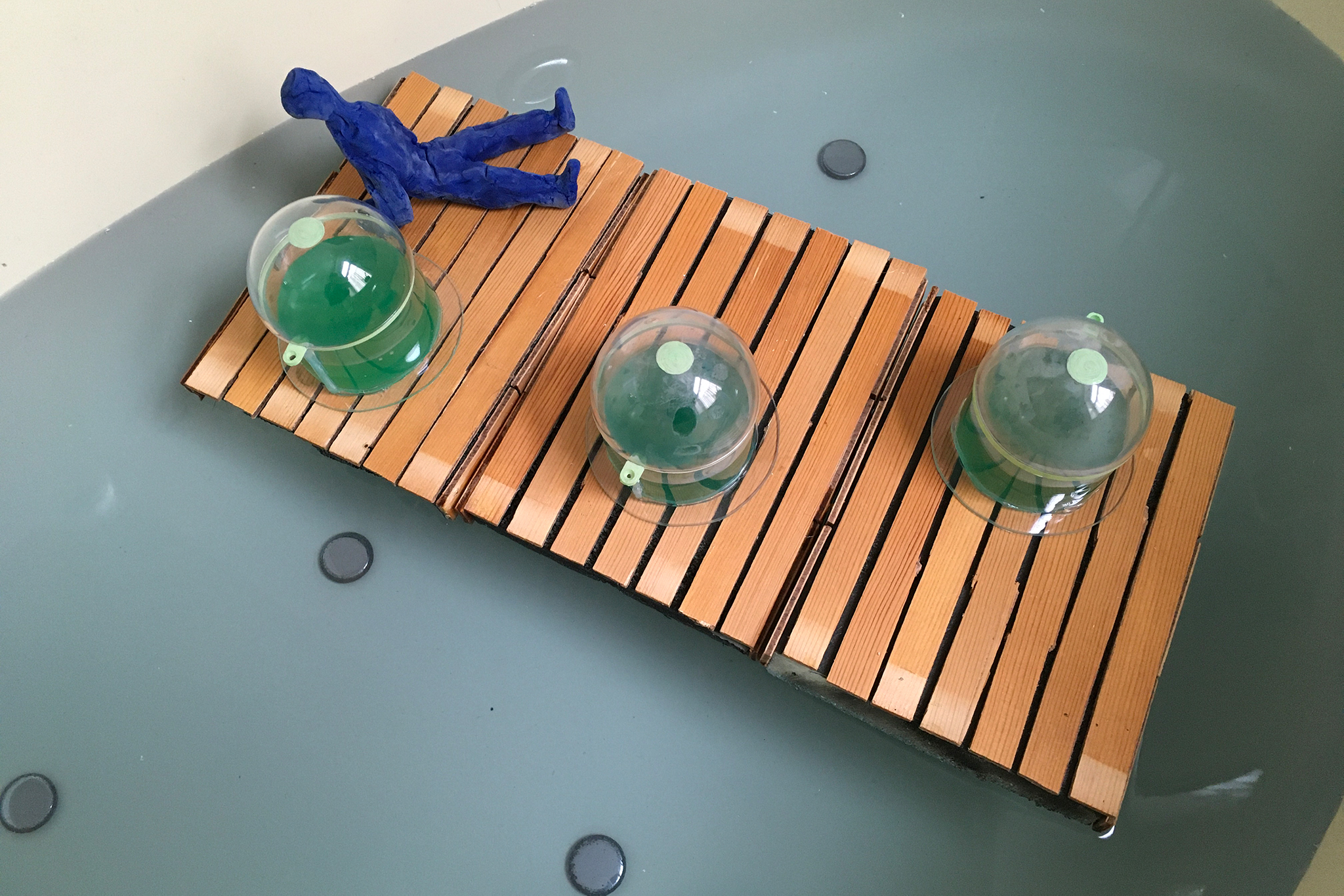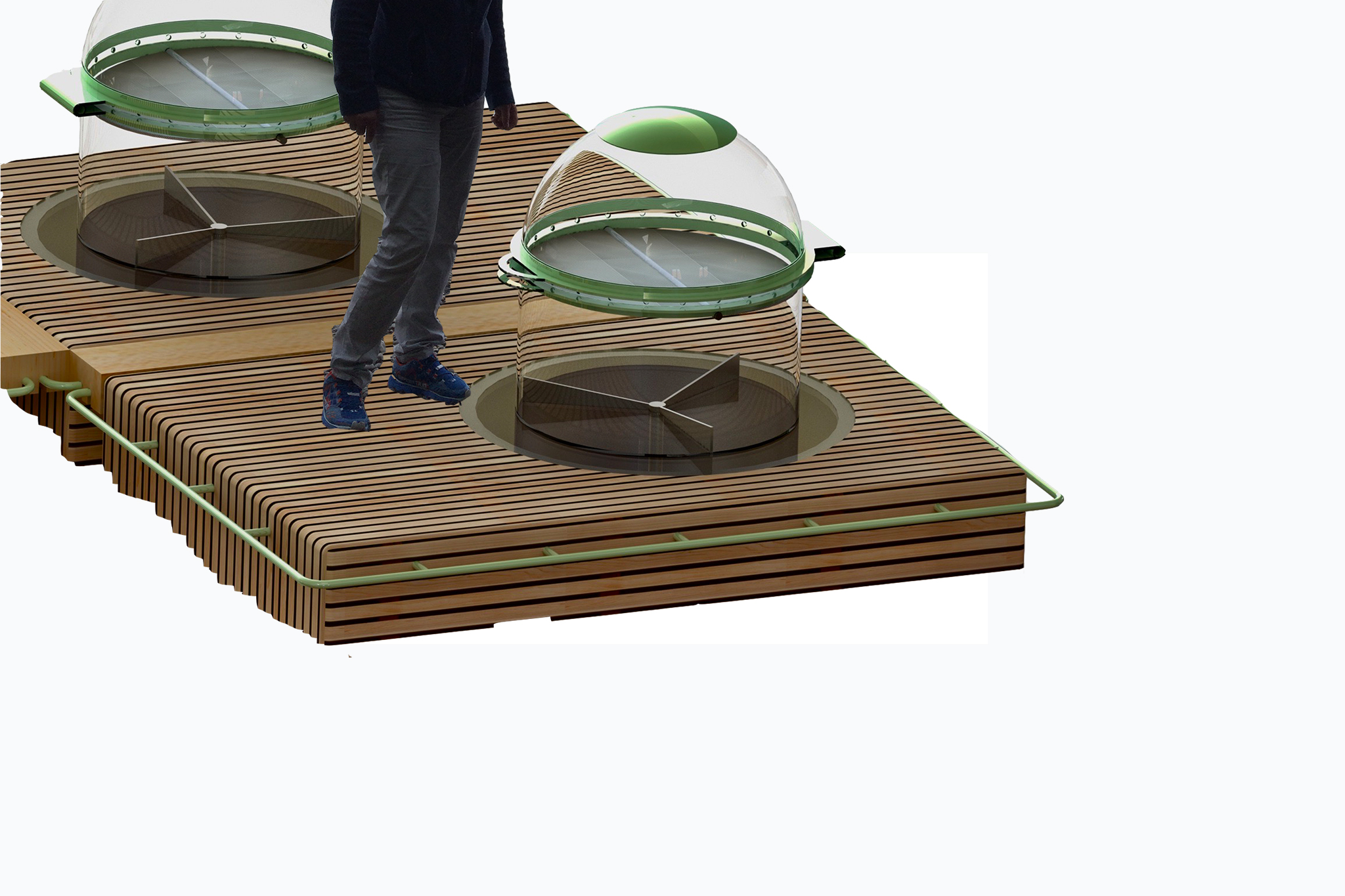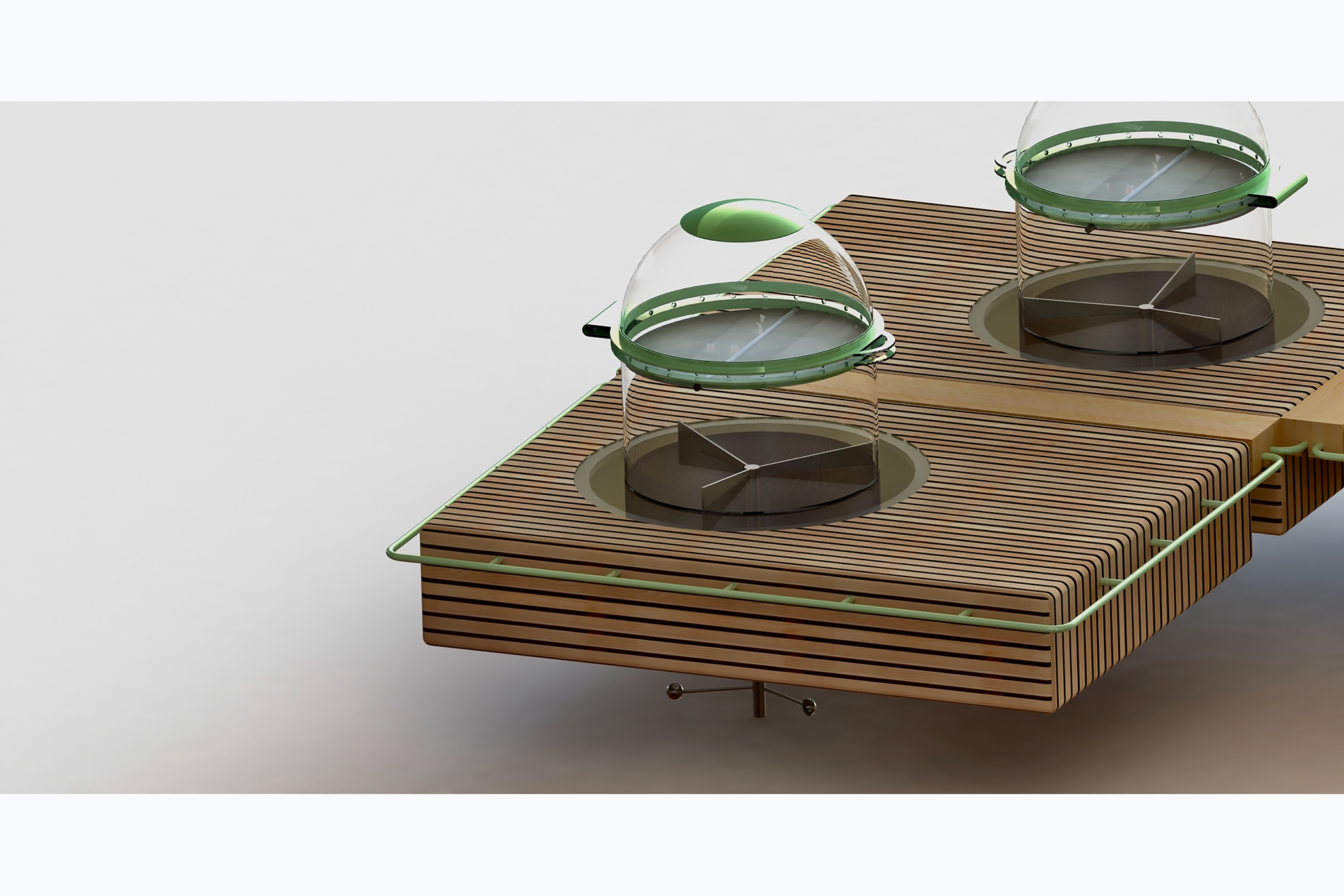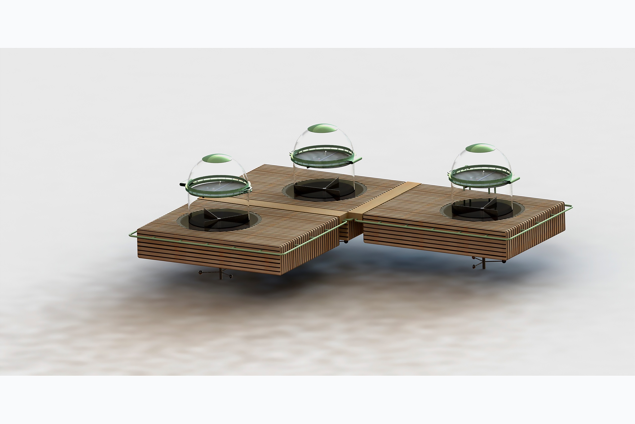 I want to use the algaes to capture CO2, working against the air pollution in the city. The Spirulina Microalgae is one of the best materials for that. So I created a “Floating Algae Island” to have a container which makes it possible to grow the algaes on water. In one year two of my designed containers would capture as much CO2as a fully grown tree. The air in the city can be cleaned in a new way.