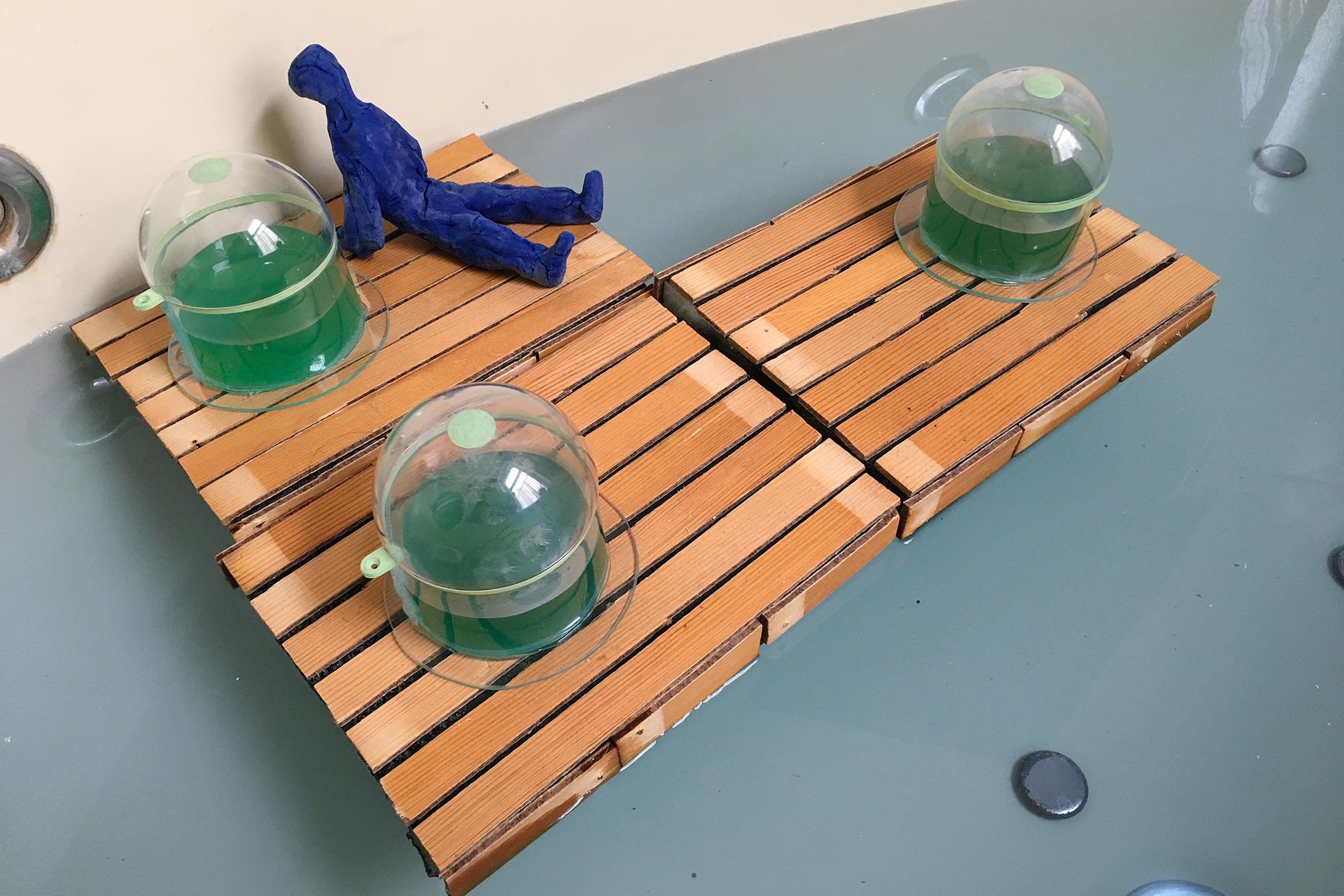 A second reason to install them on the river is to disturb no other existing and functioning infrastructure in the city. In the case of Berlin I chose the “Urbanhaven” in Kreuzberg. There is a very big unused water area. That is why I created a “Floating Algae Island” to have a container which makes it possible to grow the algaes on water.