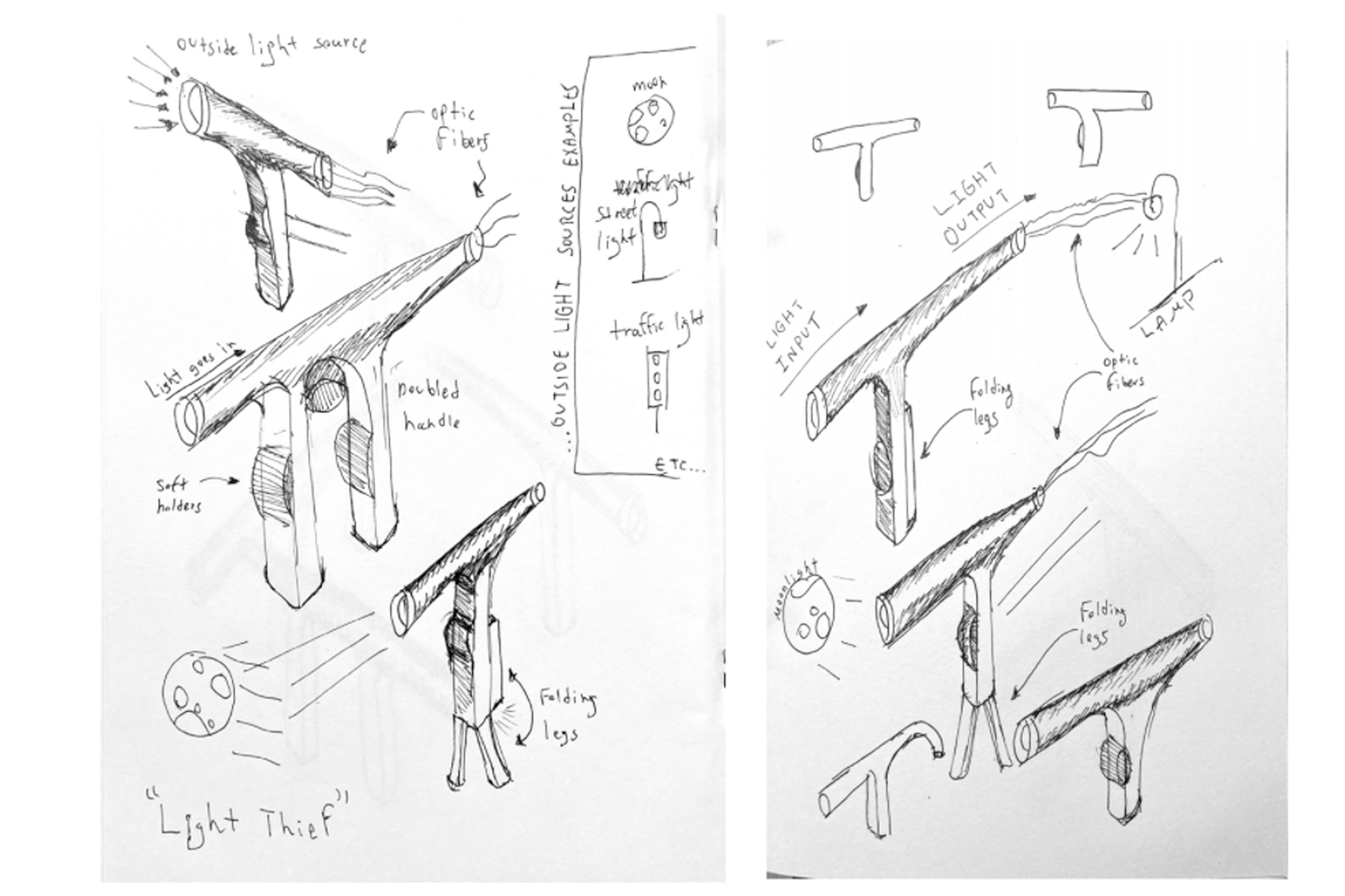 The first concept was to try to implant the optic fibers in a suited system, I have checked telescopic systems that can “steal” lights from the street and from the sky, light infrastructures system that can be found inside the walls and the ceiling of a building and is becoming an architecture project on its own.