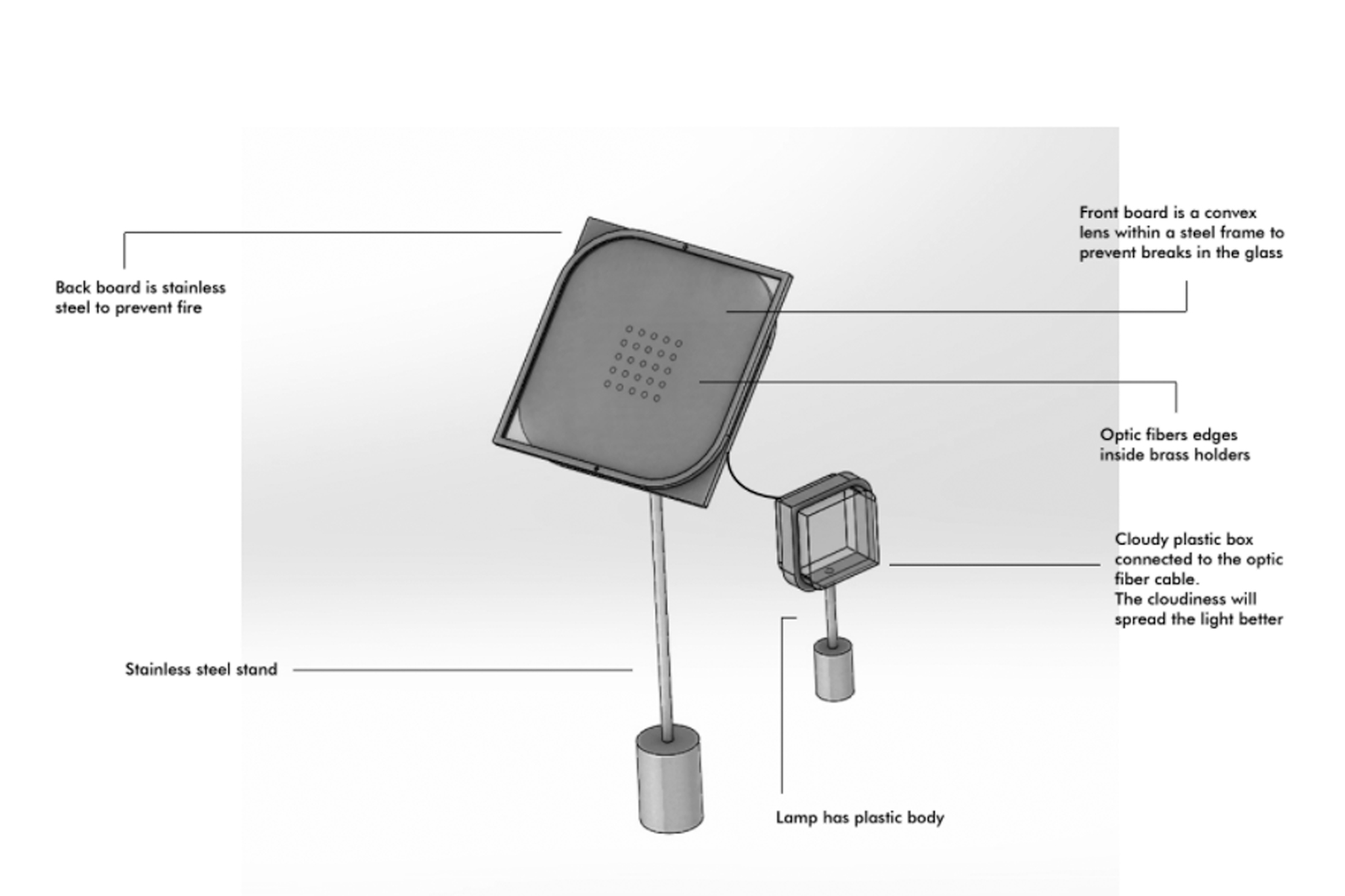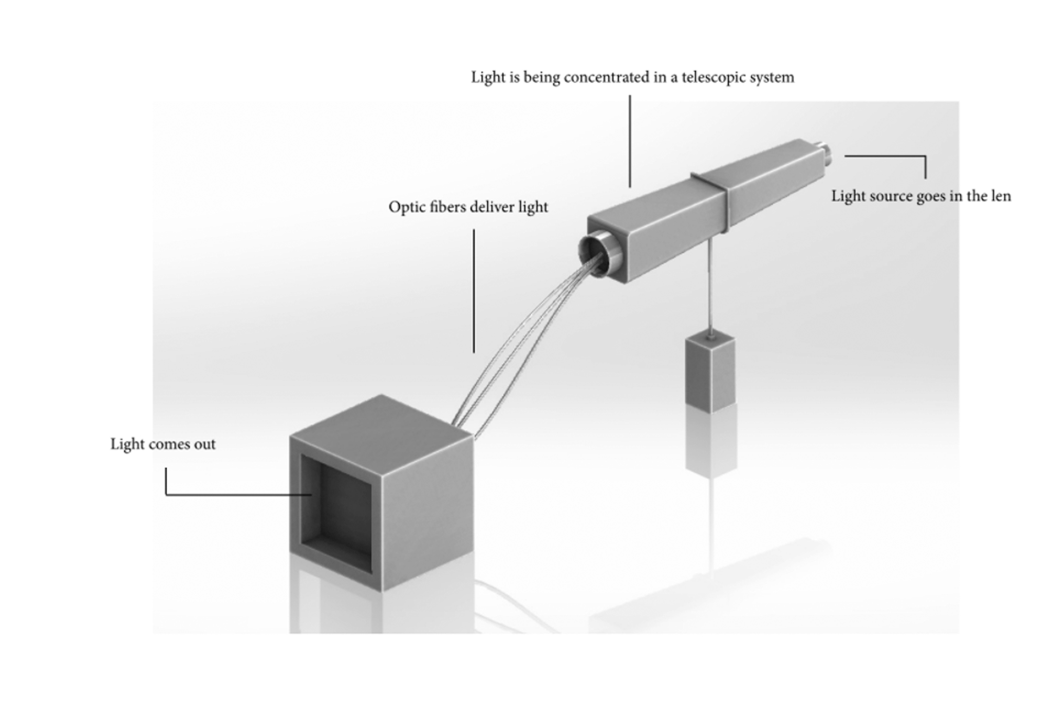 The light will be delivered after it penetrates and is focused by a large magnifying glass which lays on the top of the receiver, underneath it, the optic fibers’ edges are to be found.
