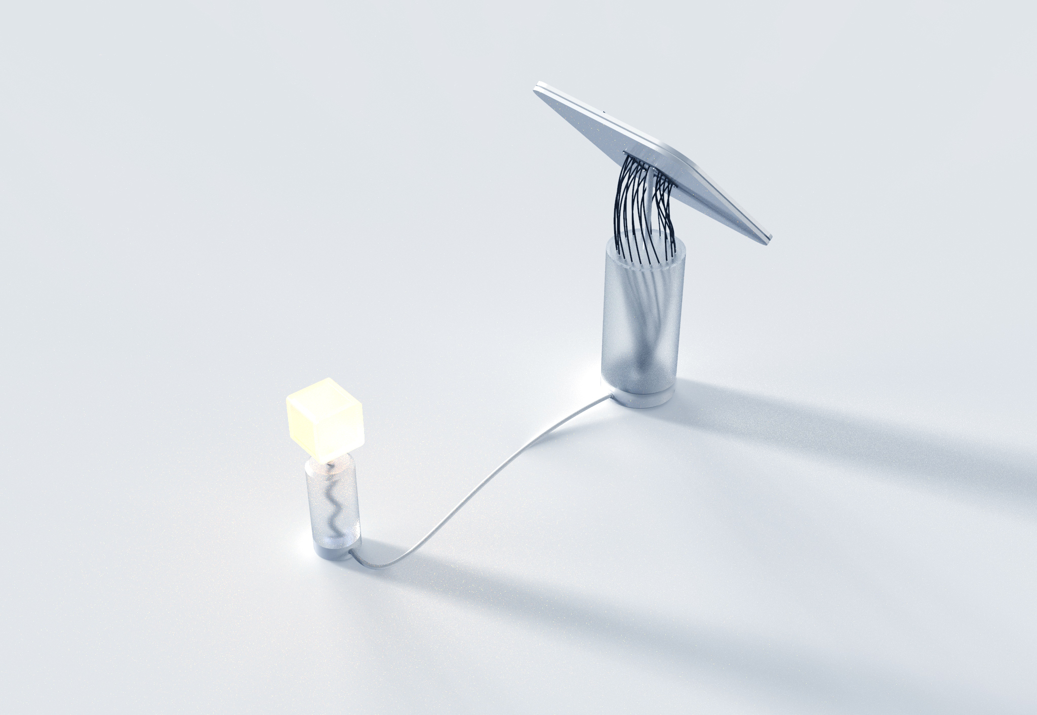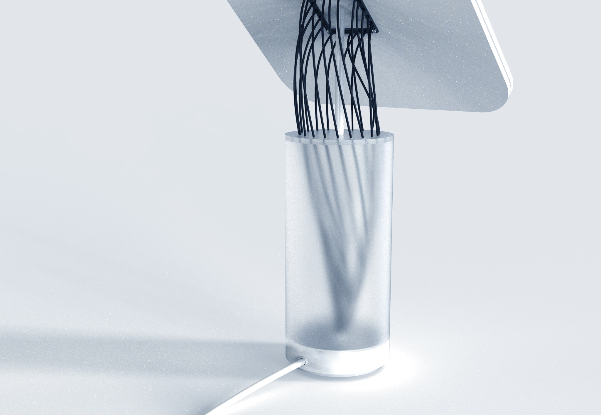 After a lot of thought, I have decided to leave the architecture project to a different aside and I have decided to design a system, a small one, that includes a receiver and a lamp. Between those two, a bunch of optic fibers – warped up together – are connected.