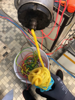 The aim was to produce high-quality materials from chewed chewing gum as recycled plastic through modification and extrusion and then processing it further on. The chewed gum is re-integrated into an economic cycle so that the ingredients do not end up on the street and unnoticed.